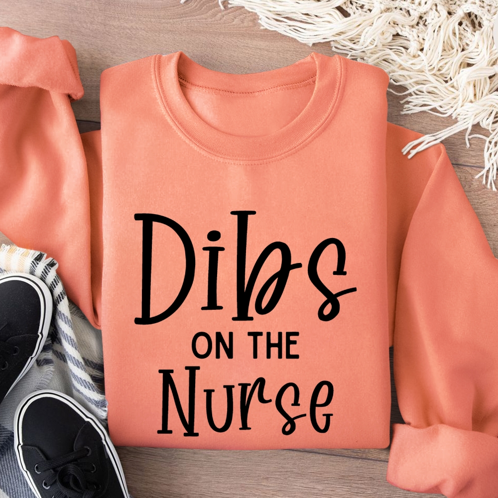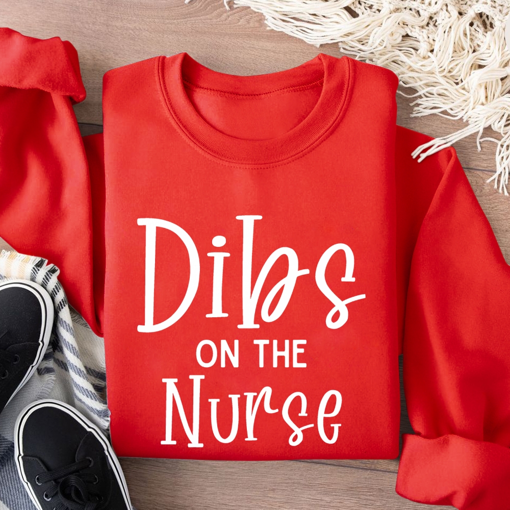 Dibs On The Nurse Cotton Pullover Sweatshirt