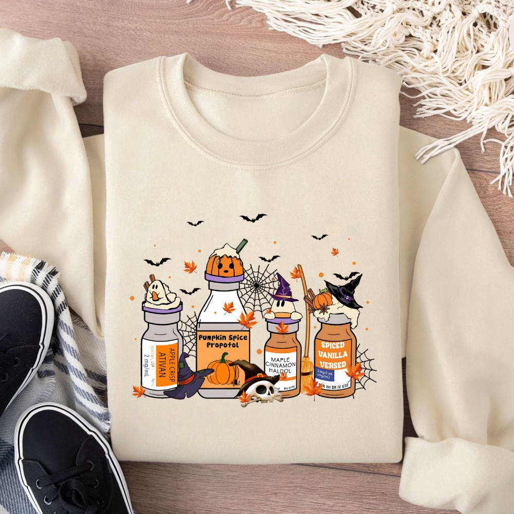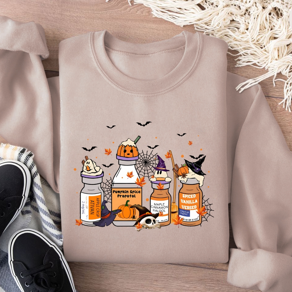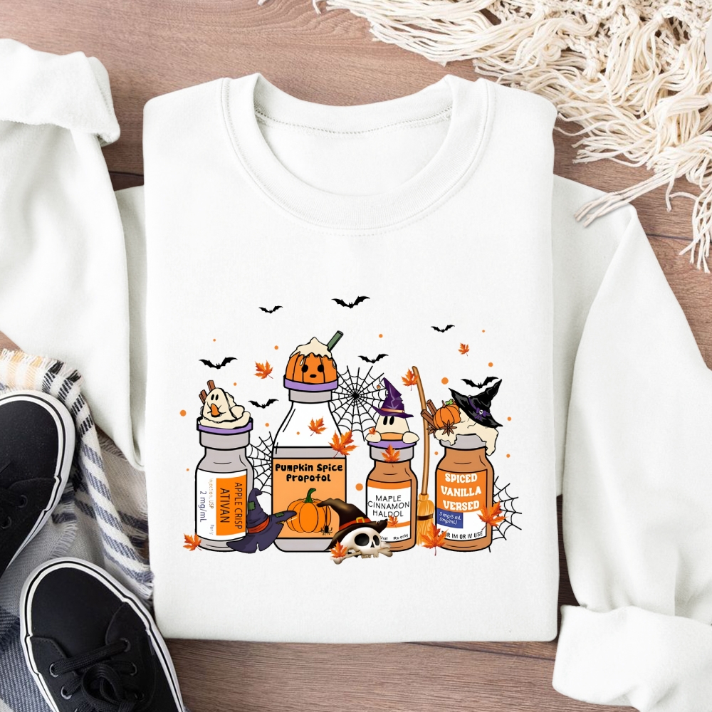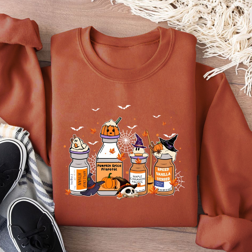 Halloween Pills Cotton Pullover Sweatshirt