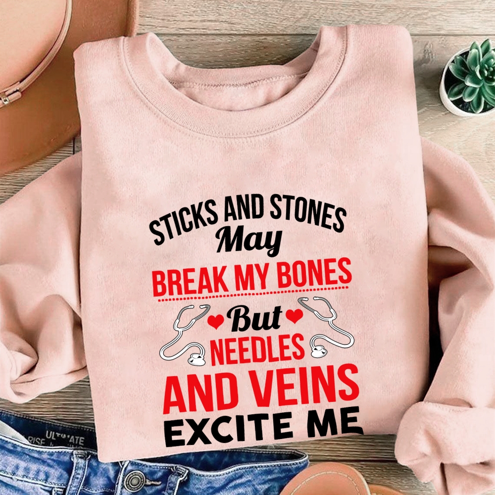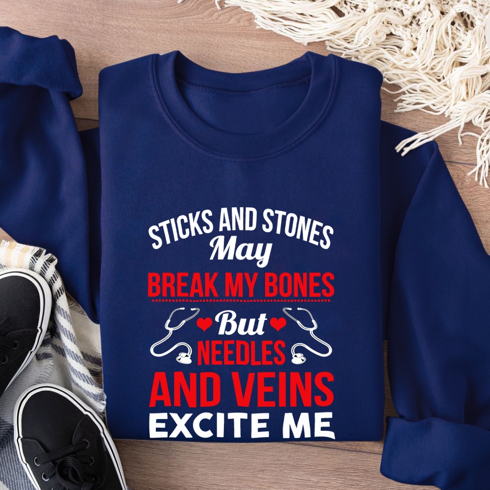 Needles and Veins Excite Me Cotton Pullover Sweatshirt