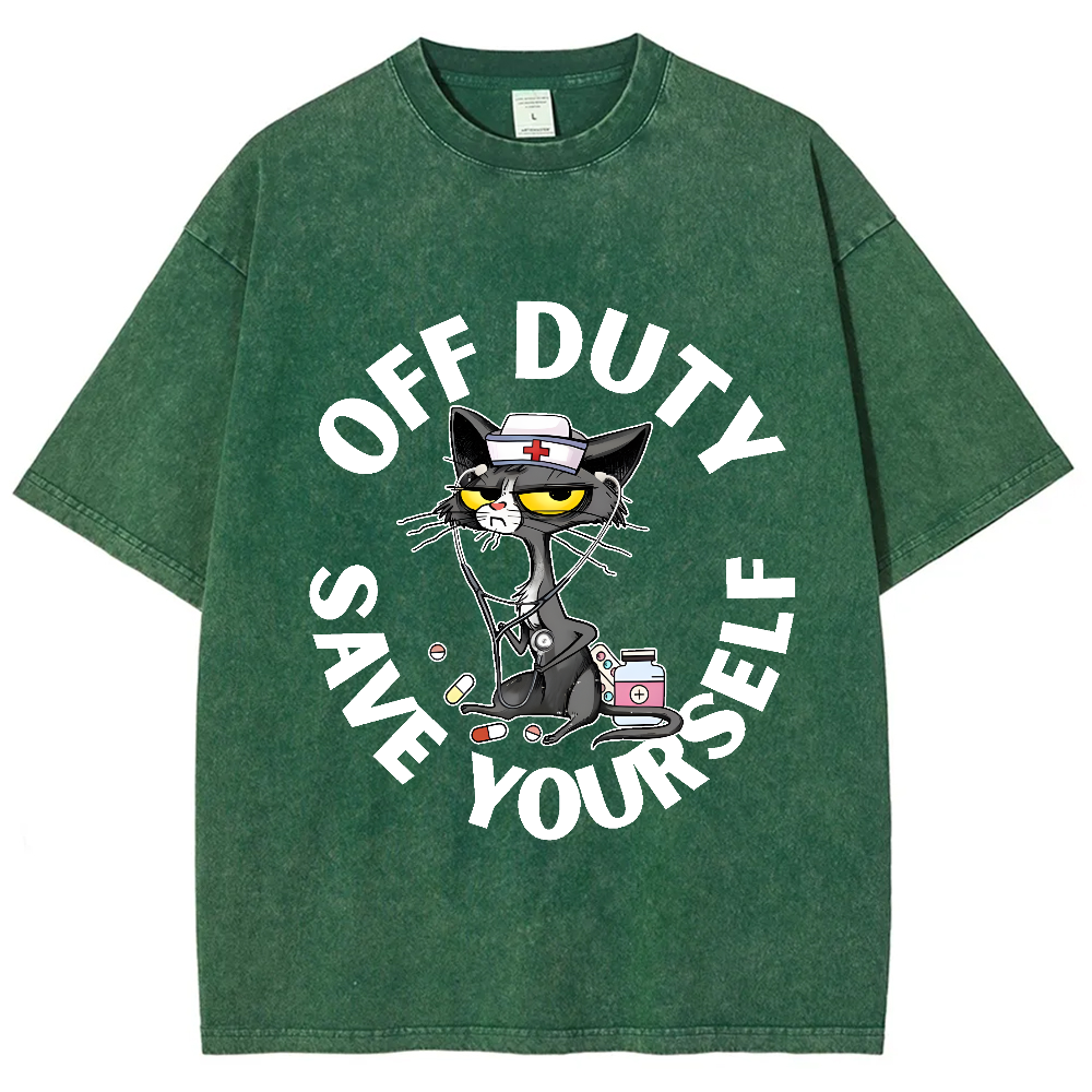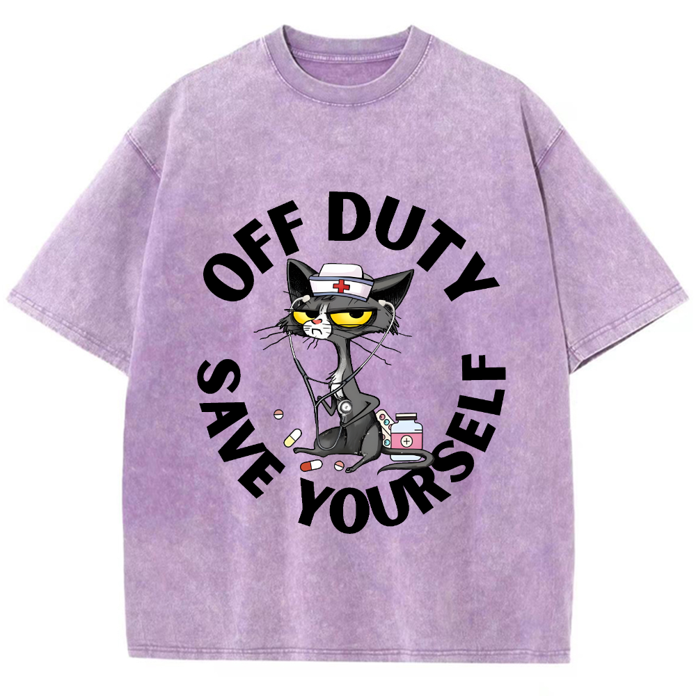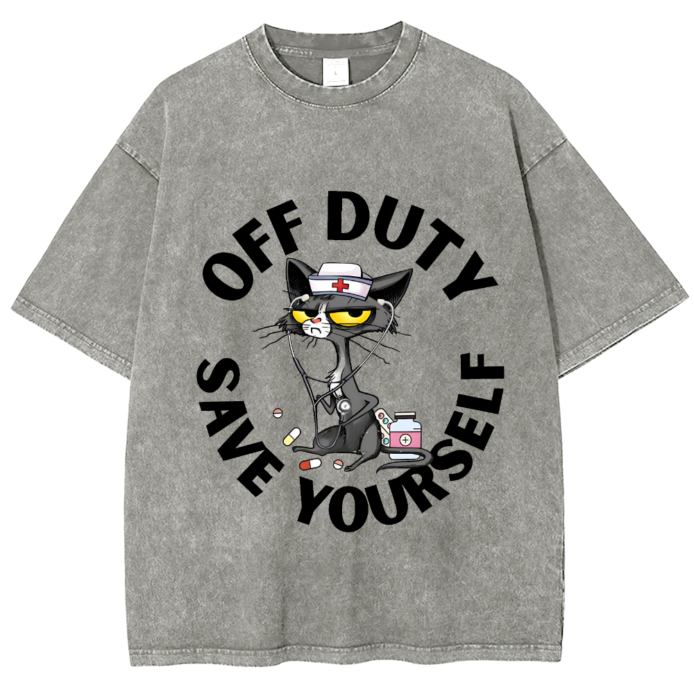 Cat Off Duty Save Yourself Vintage Washed T-shirt
