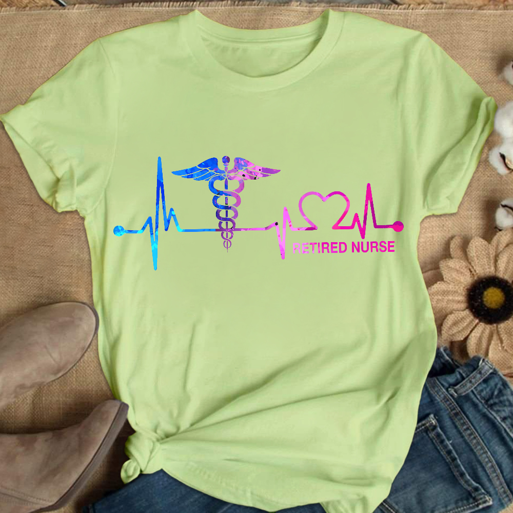 Retired Nurse Heartbeat Watercolor Cotton Nurse T-shirt