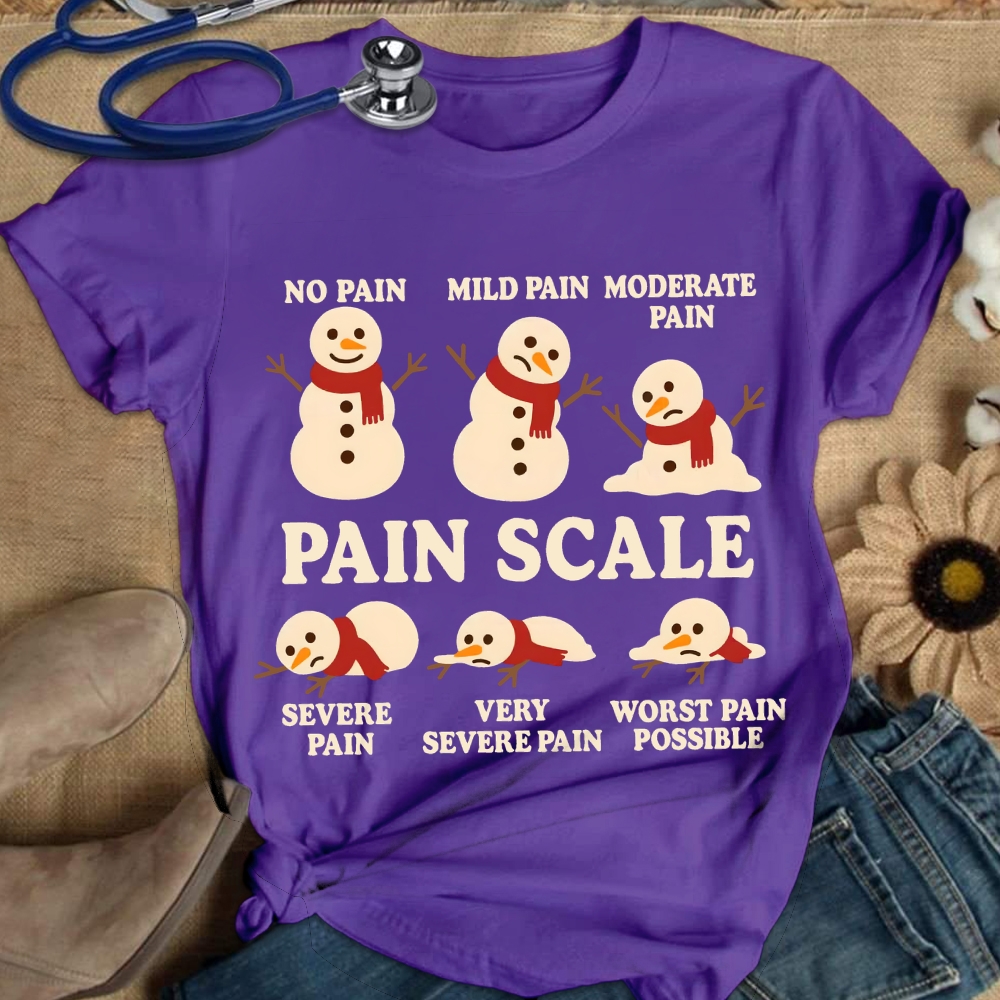 Christmas Medical Snowman Pain Scale Cotton Nurse T-shirt