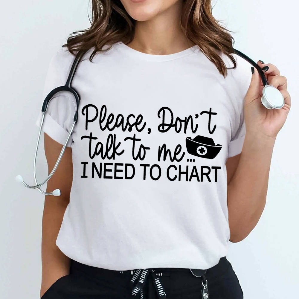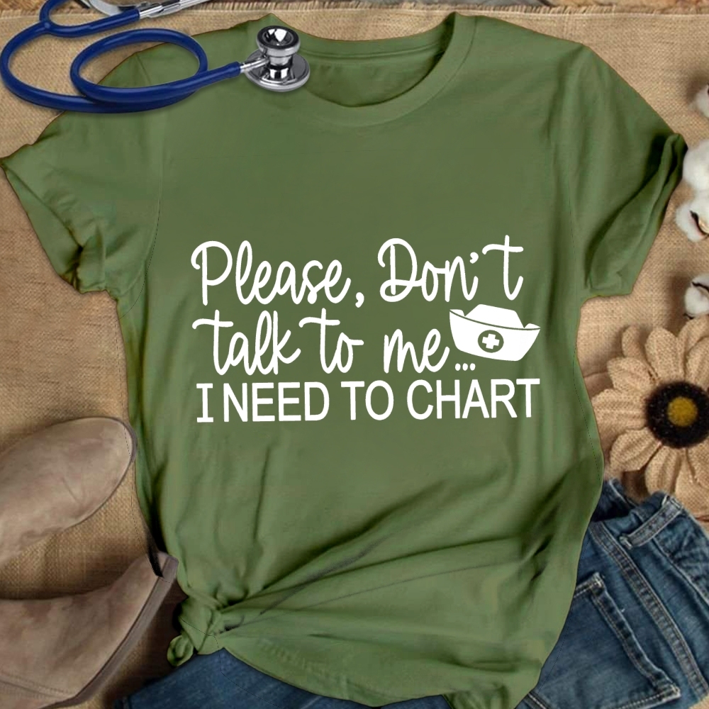 Please Don't Talk To Me I Need To Chart Cotton Nurse T-shirt
