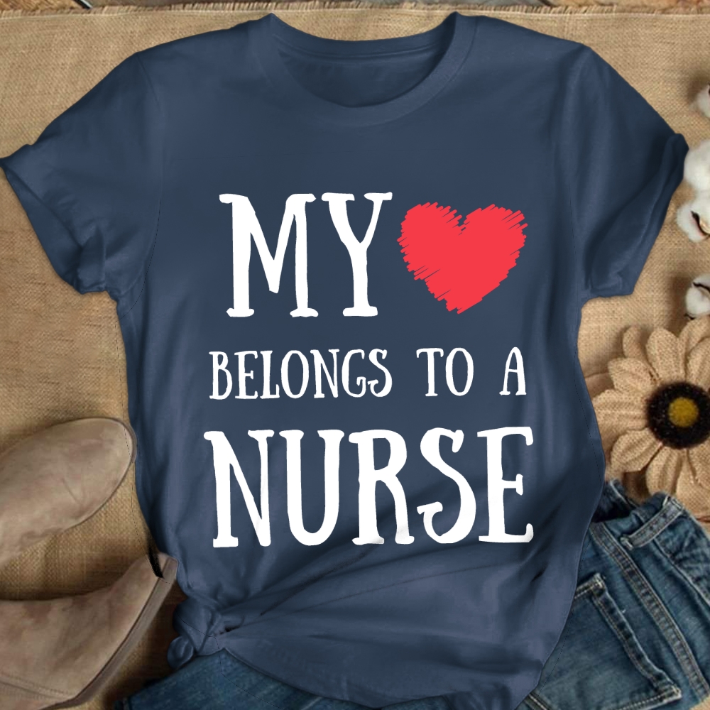 My Heart Belongs To A Nurse Cotton Nurse T-shirt