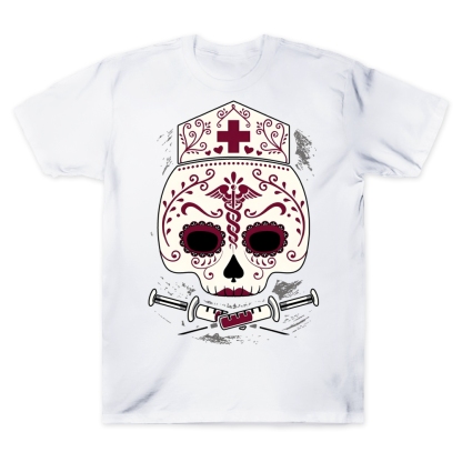 Nurse Sugar Skull Cotton Doctor T-shirt