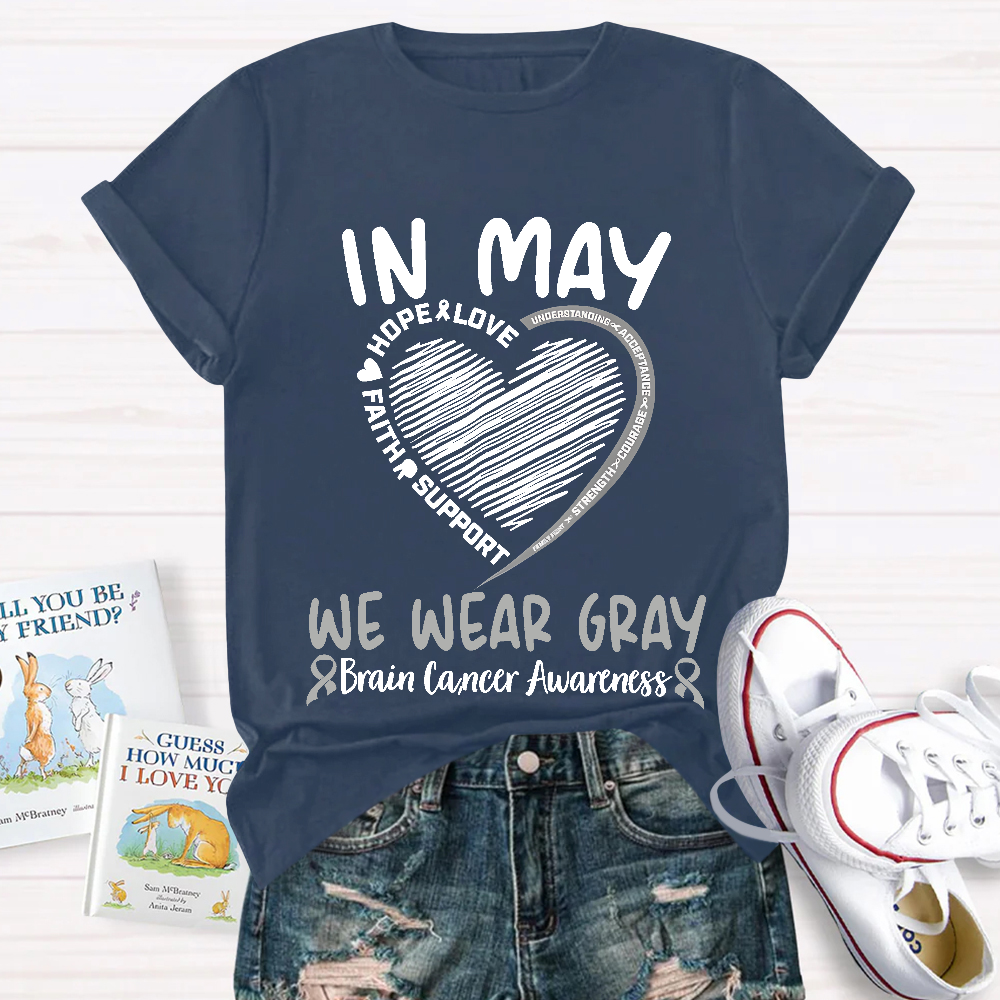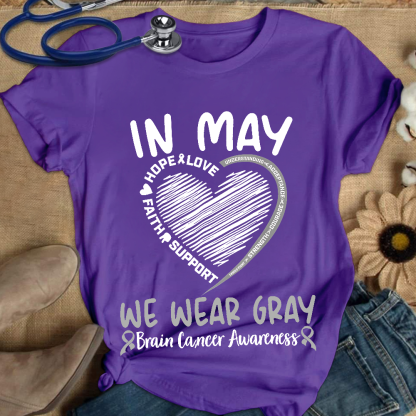 In May We Wear Gray Brain Cancer Awareness Love& Hope& Faith& Support Cotton Nurse T-shirt