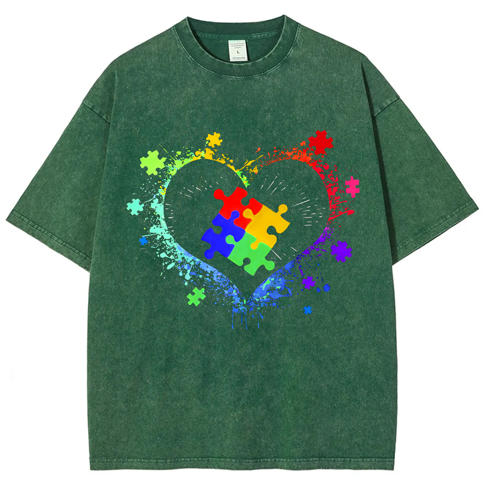 Autism Awareness Love Heart Vintage Washed T-shirt