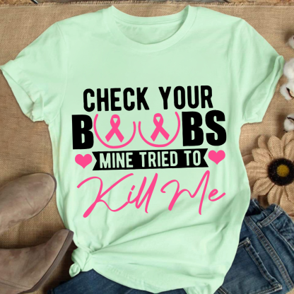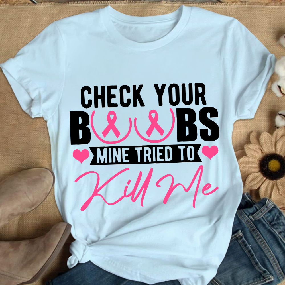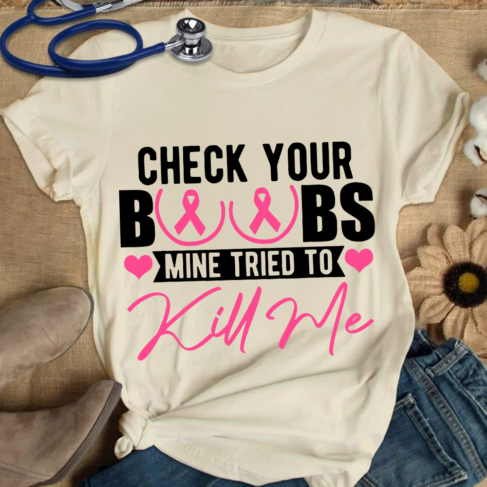 Check Your Boobs Mine Tried To Kill Me Cotton Nurse T-shirt