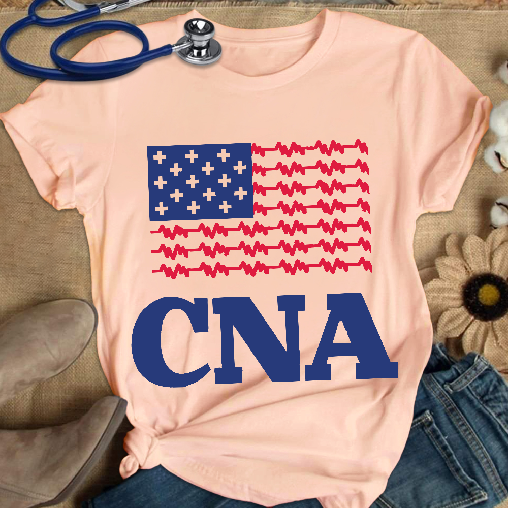 CNA USA Flag July 4th Cotton Nurse T-shirt