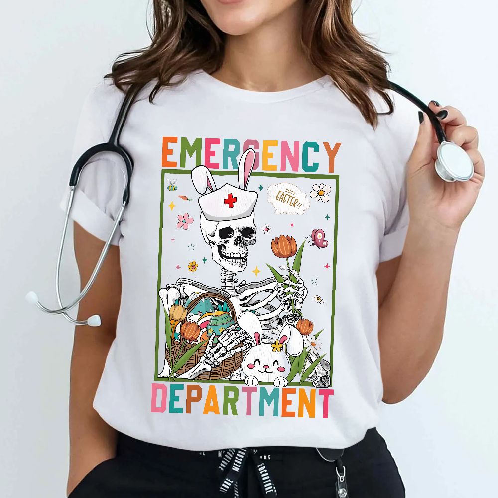 Easter Emergency Department Skeleton Cotton Nurse T-shirt