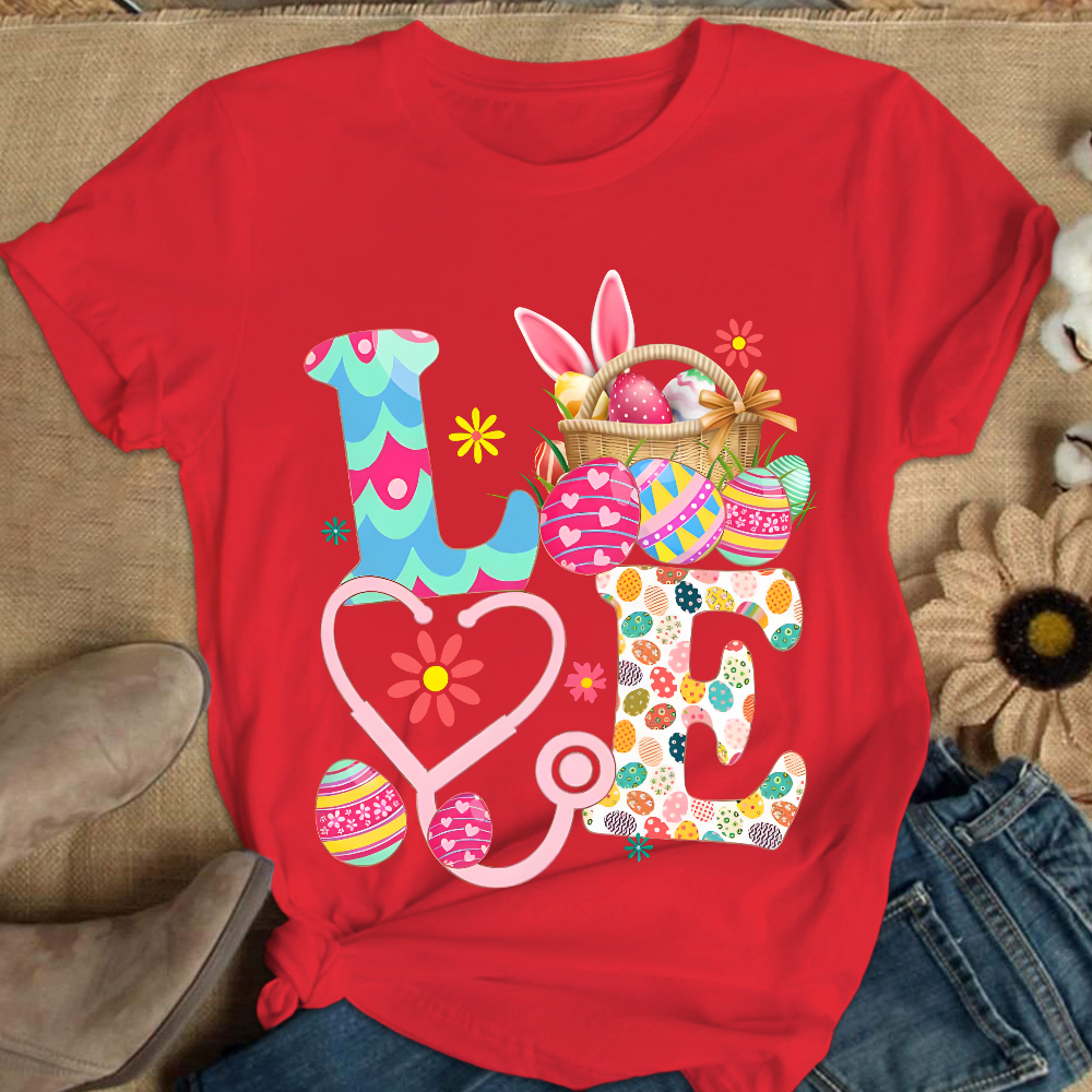 Easter Love Rich Pattern Cotton Nurse T-shirt