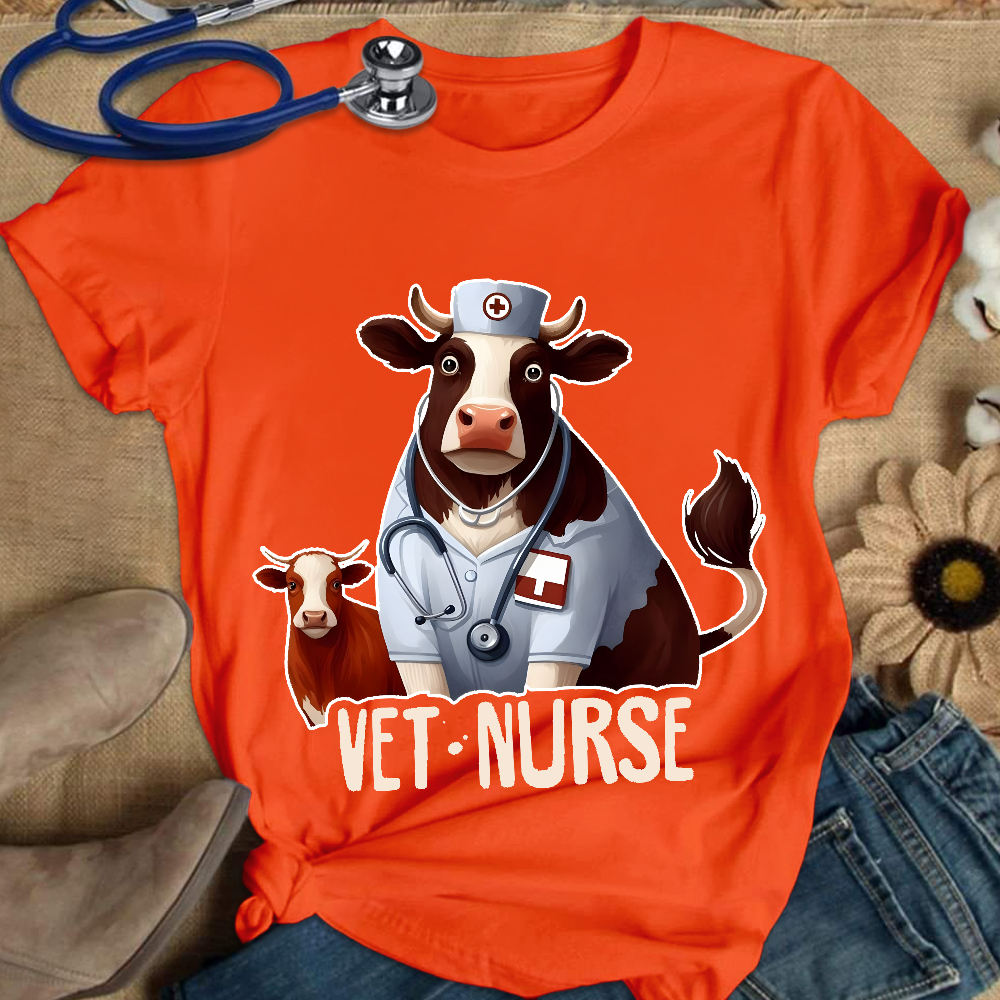 Funny Cattle Vet Nurse Cotton Nurse T-shirt