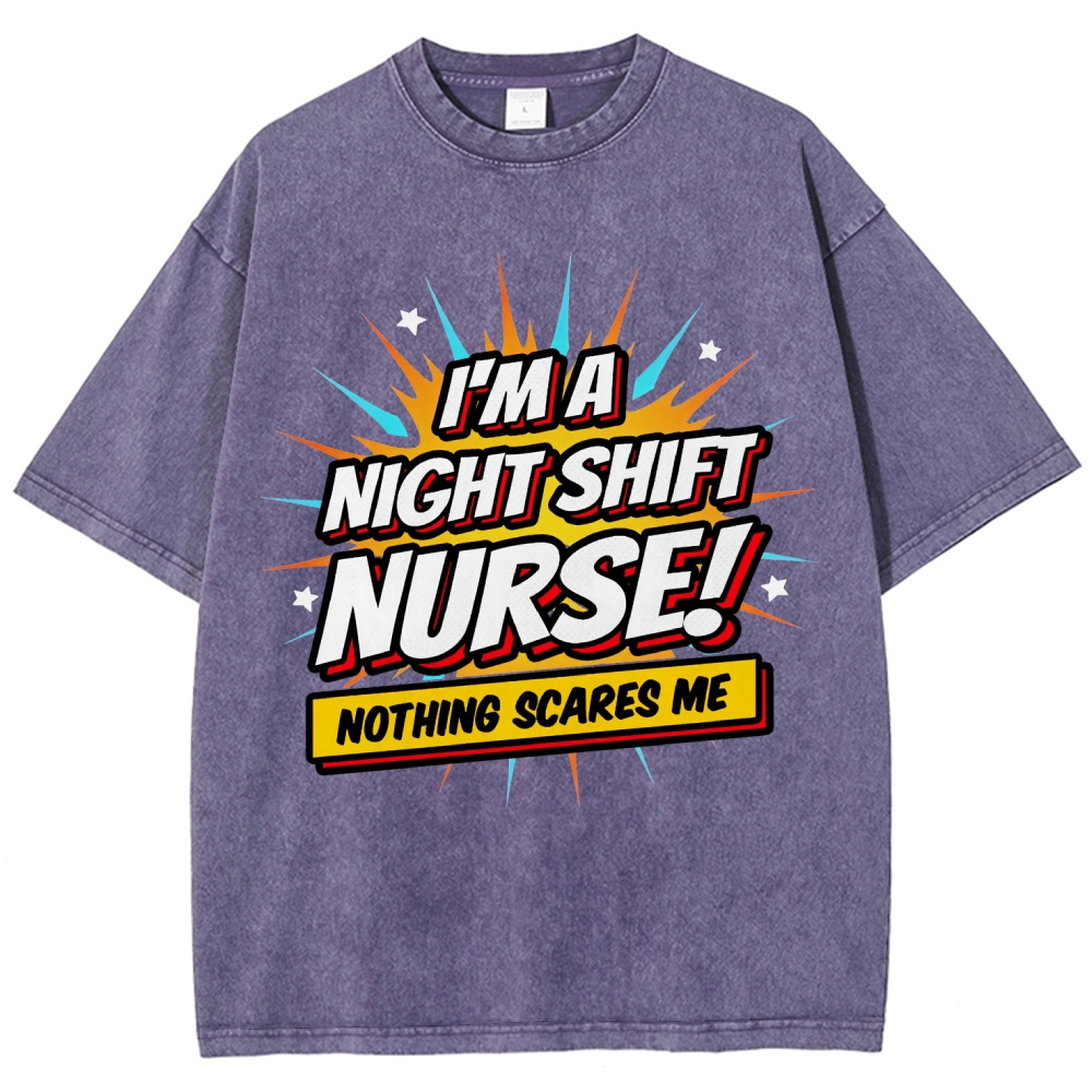 Funny Superhero Night Shift Nurse Appreciation Vintage Washed T-shirt