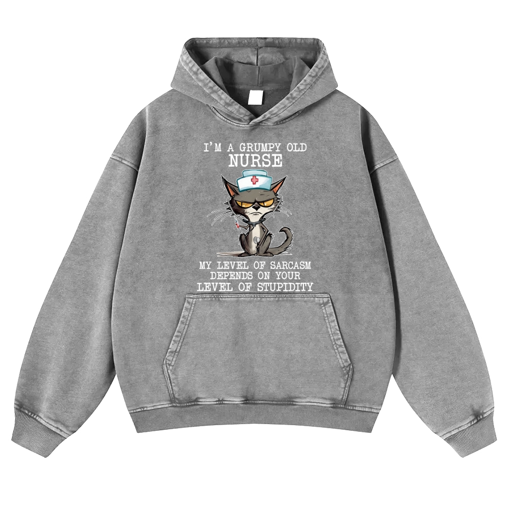 Grumpy Nurse Cat Vintage Washed Hoodie