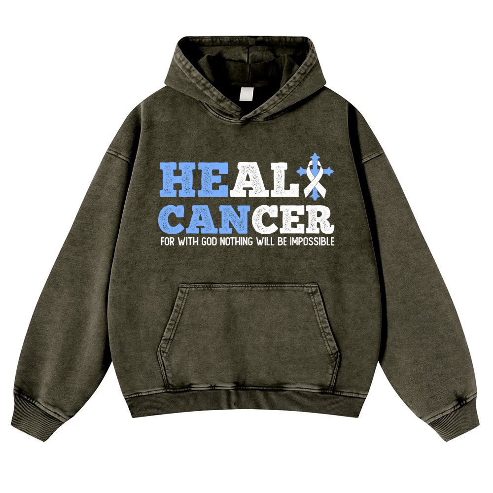 Heal Cancer With God Nothing Is Impossible Vintage Washed Hoodie