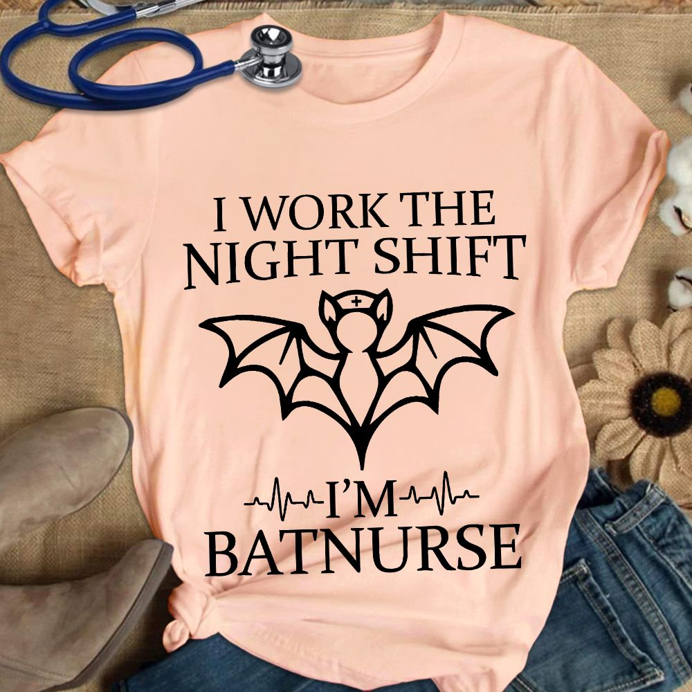 I Work The Night Shift I'm Batnurse Cotton Nurse T-shirt