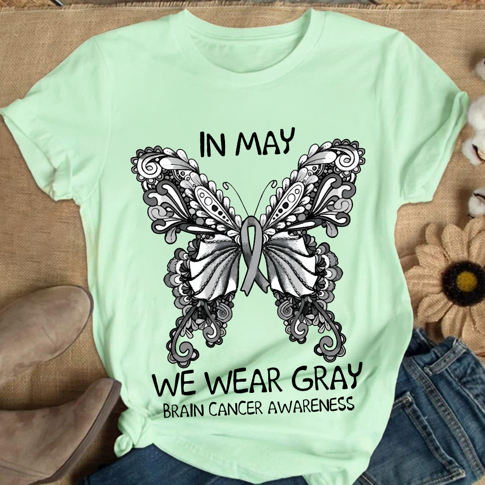 In May We Wear Gray Brain Cancer Awareness Cotton Nurse T-shirt