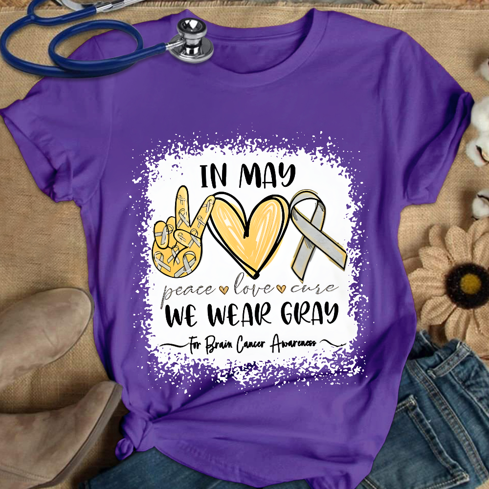 In May We Wear Gray For Brain Cancer Awareness Cotton Nurse T-shirt
