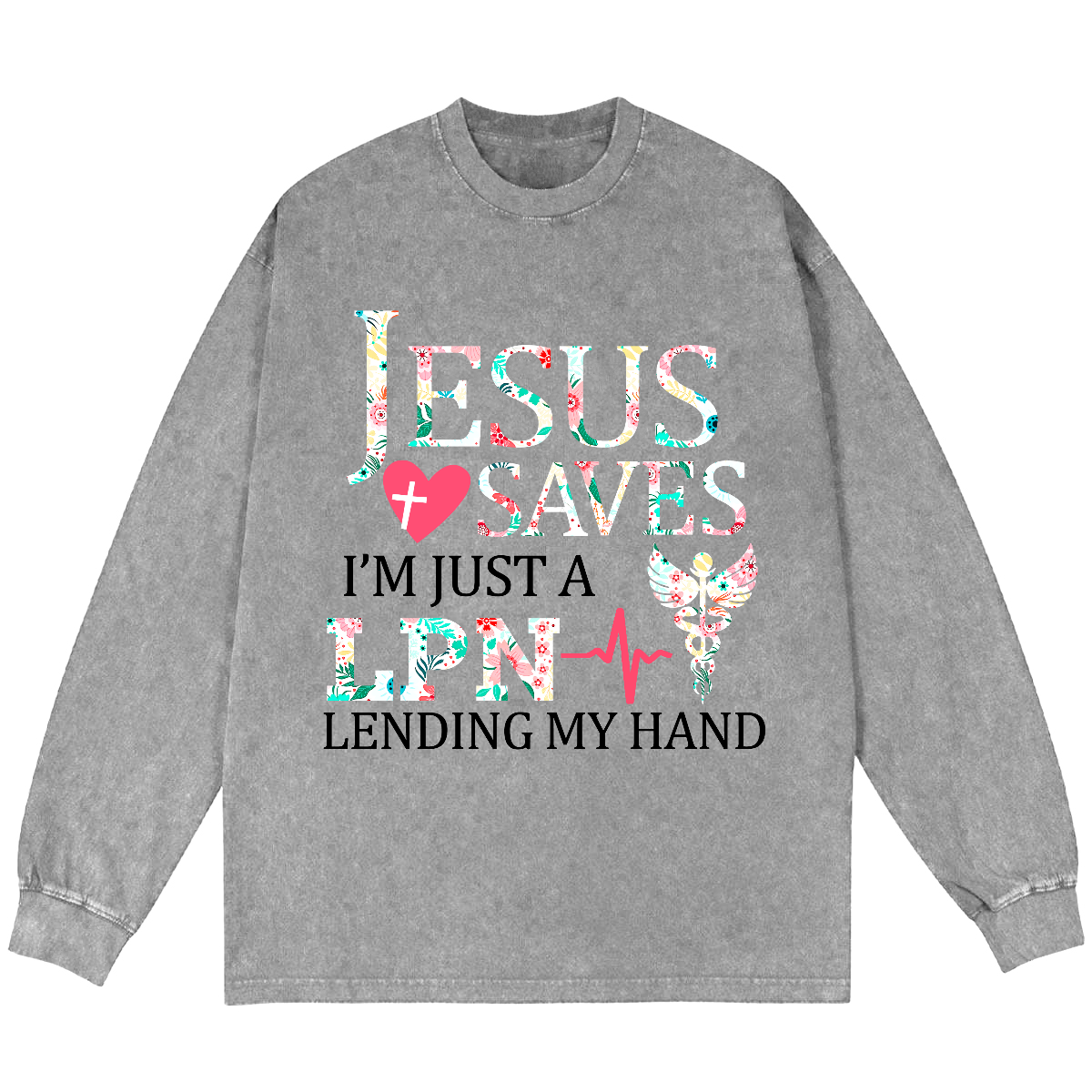 Jesus Saves Im Just A Lpn Lending My Hand Vintage Washed Sweatshirts