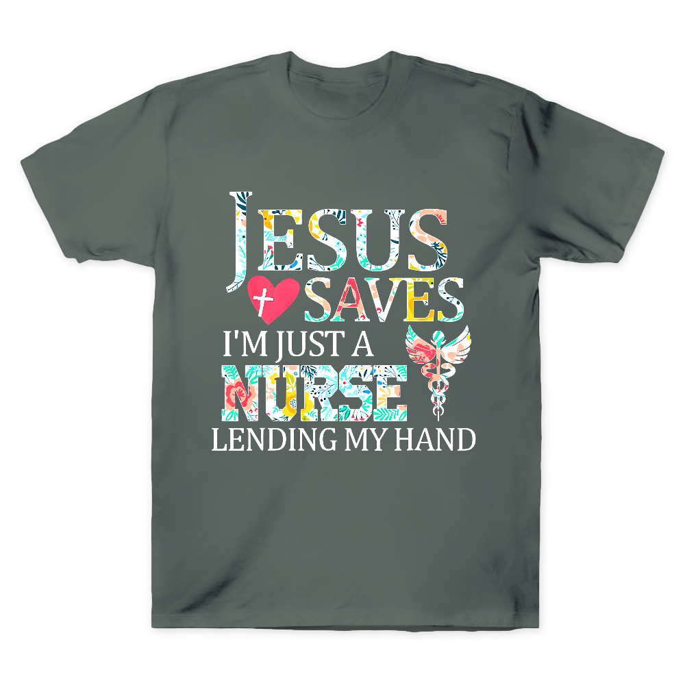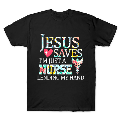 Jesus Saves Im Just A Nurse Lending My Hand Cotton Doctor T-shirt