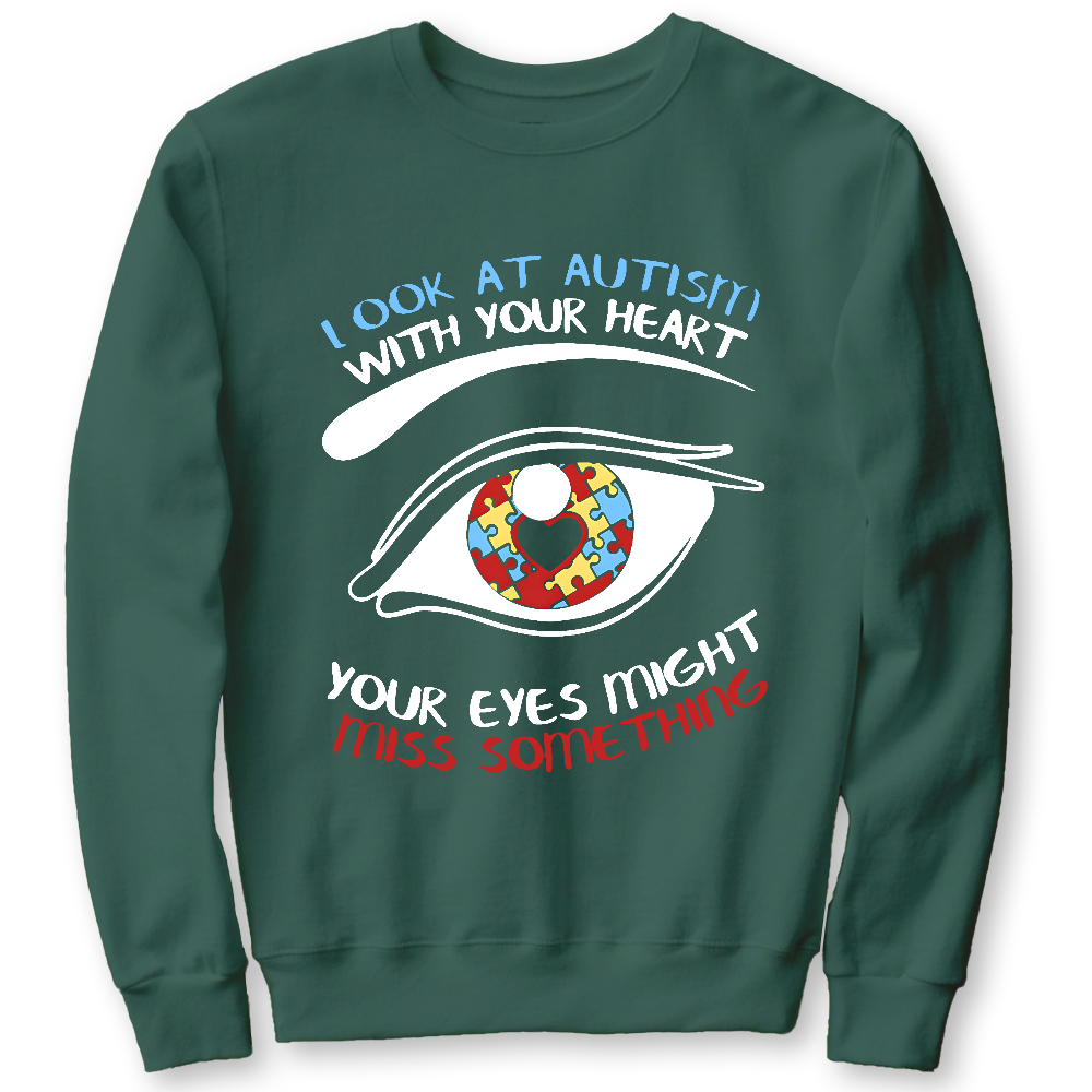 Look At Autism With Your Heart Your Eyes Might Miss Something Cotton Pullover Sweatshirt