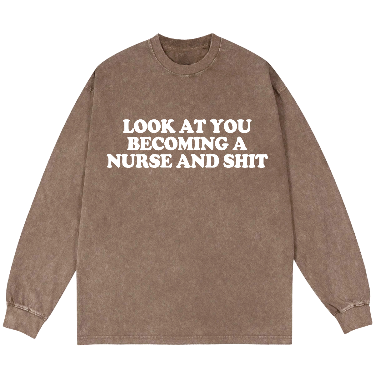 Look At You Becoming A Nurse And Shit Vintage Washed Sweatshirts