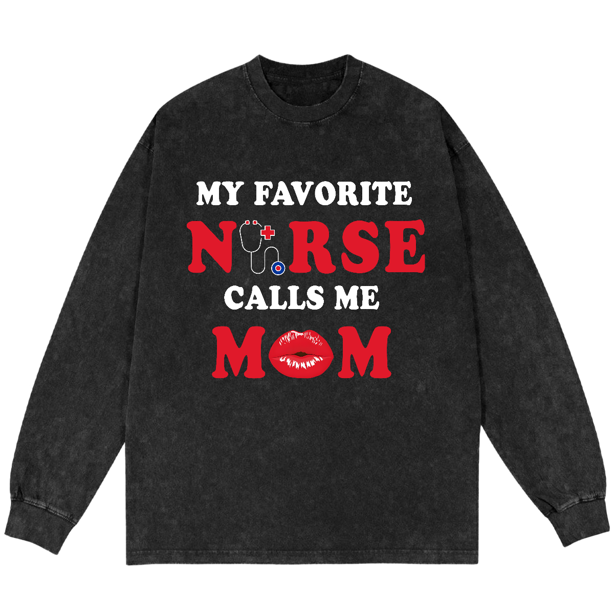 My Favorite Nurse Calls Me Mom Vintage Washed Sweatshirts
