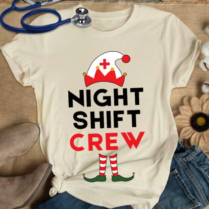 Night Shift Crew Nurse Elf Guardian Of The Night Cotton Nurse T-shirt