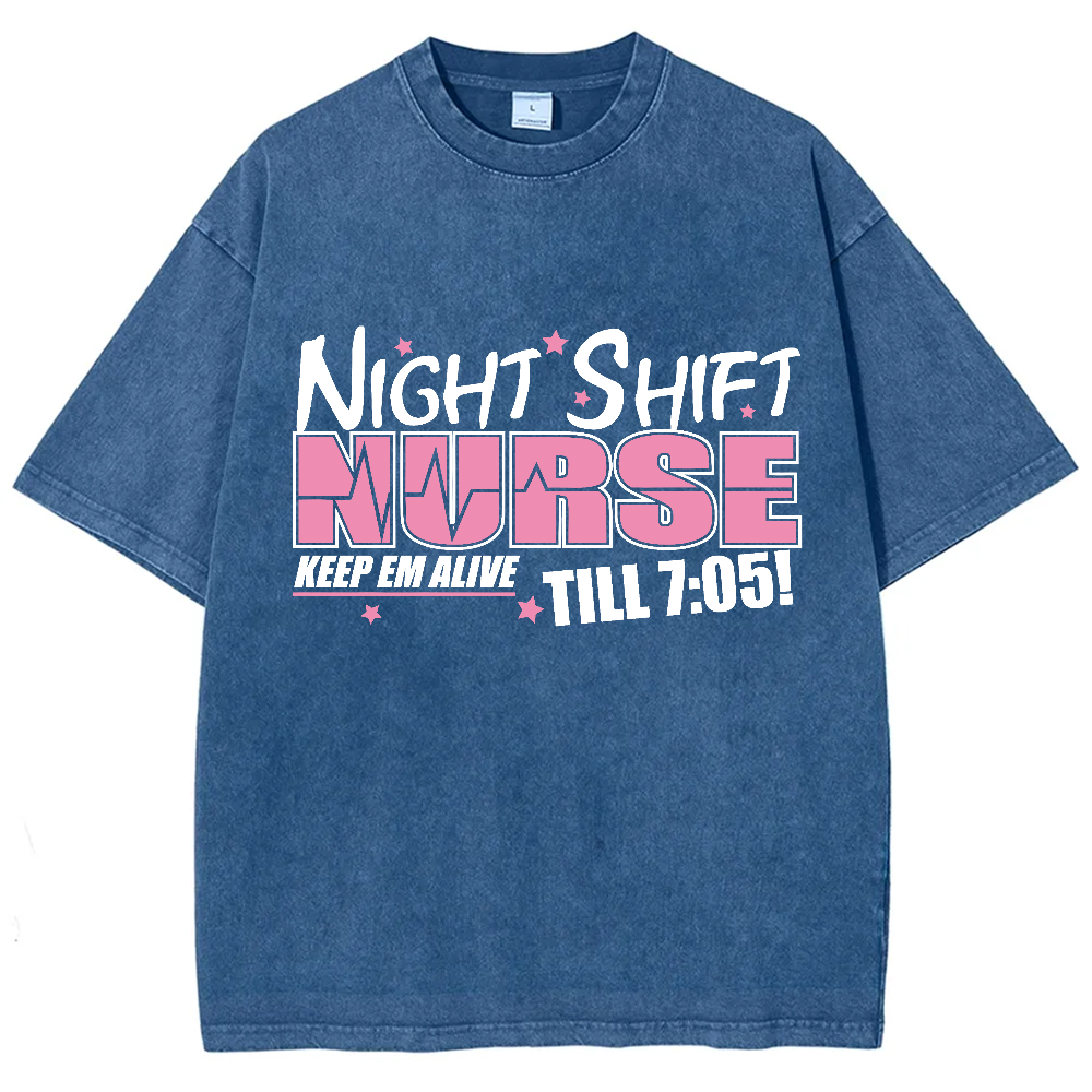 Night Shift Nurse Keep Em Alive Till 7:05 Vintage Washed T-shirt