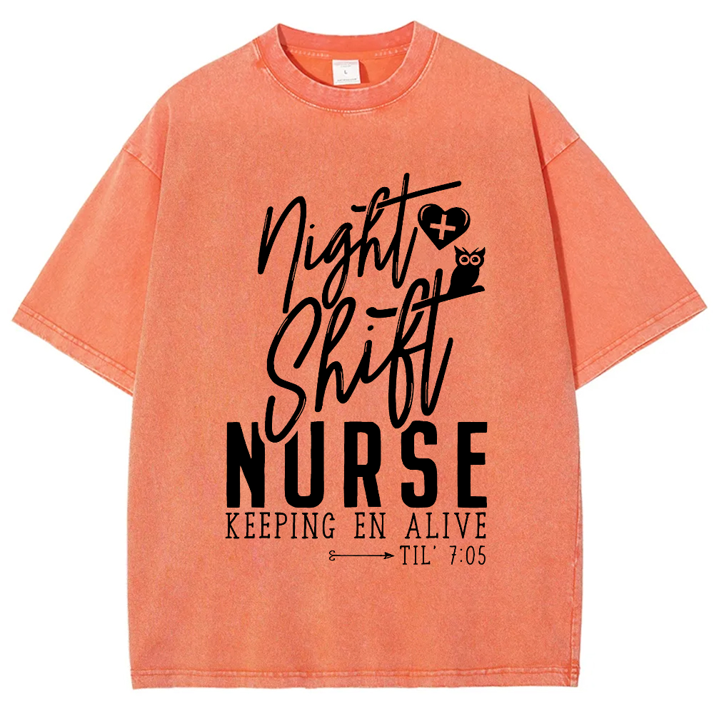 Night Shift Nurse Keeping En Alive Vintage Washed T-shirt