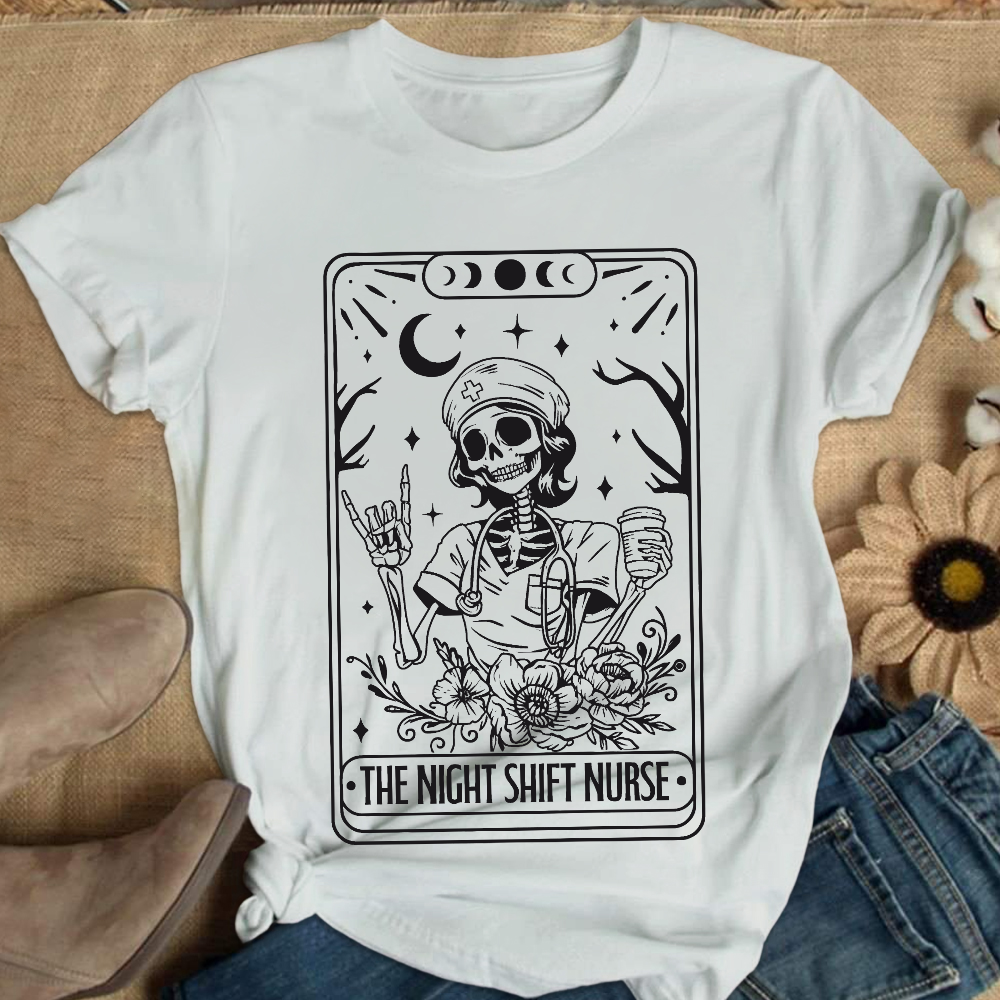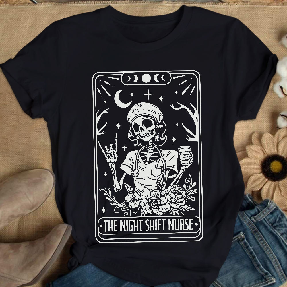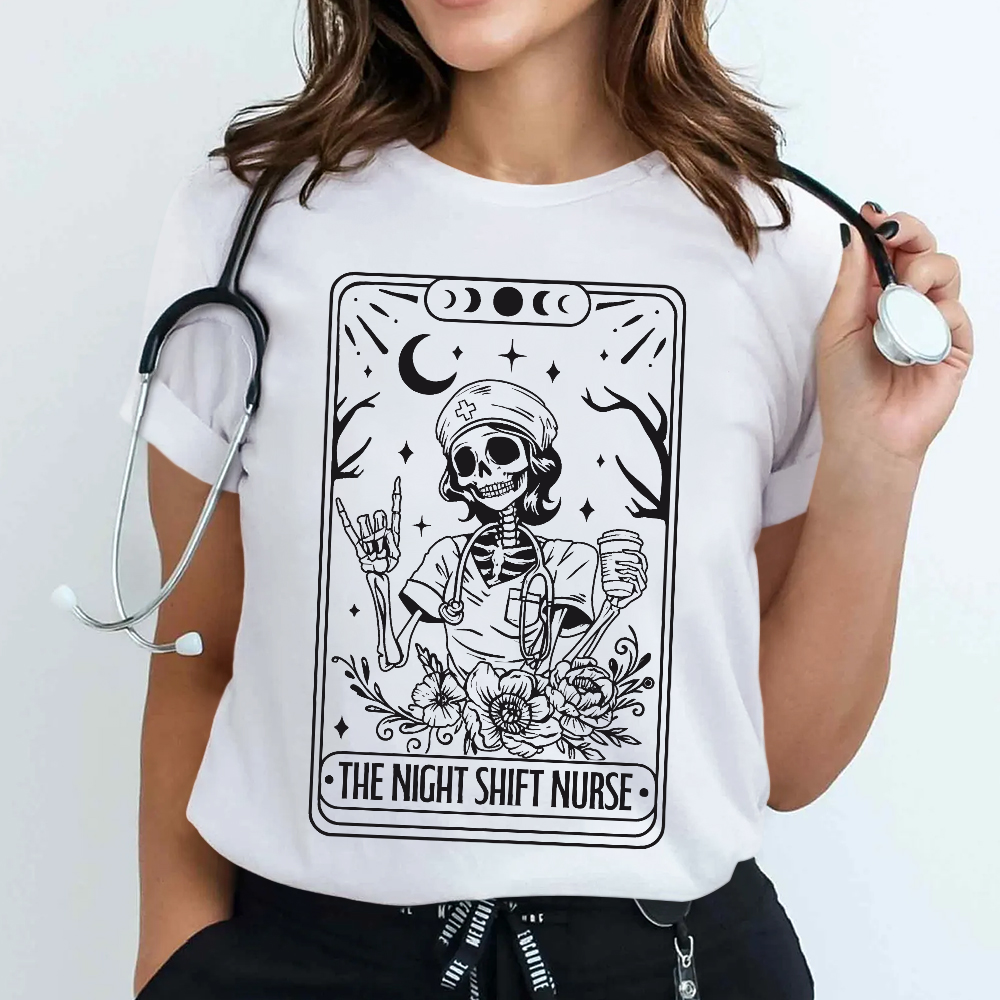 Night Shift Nurse Tarot Card Cotton Nurse T-shirt