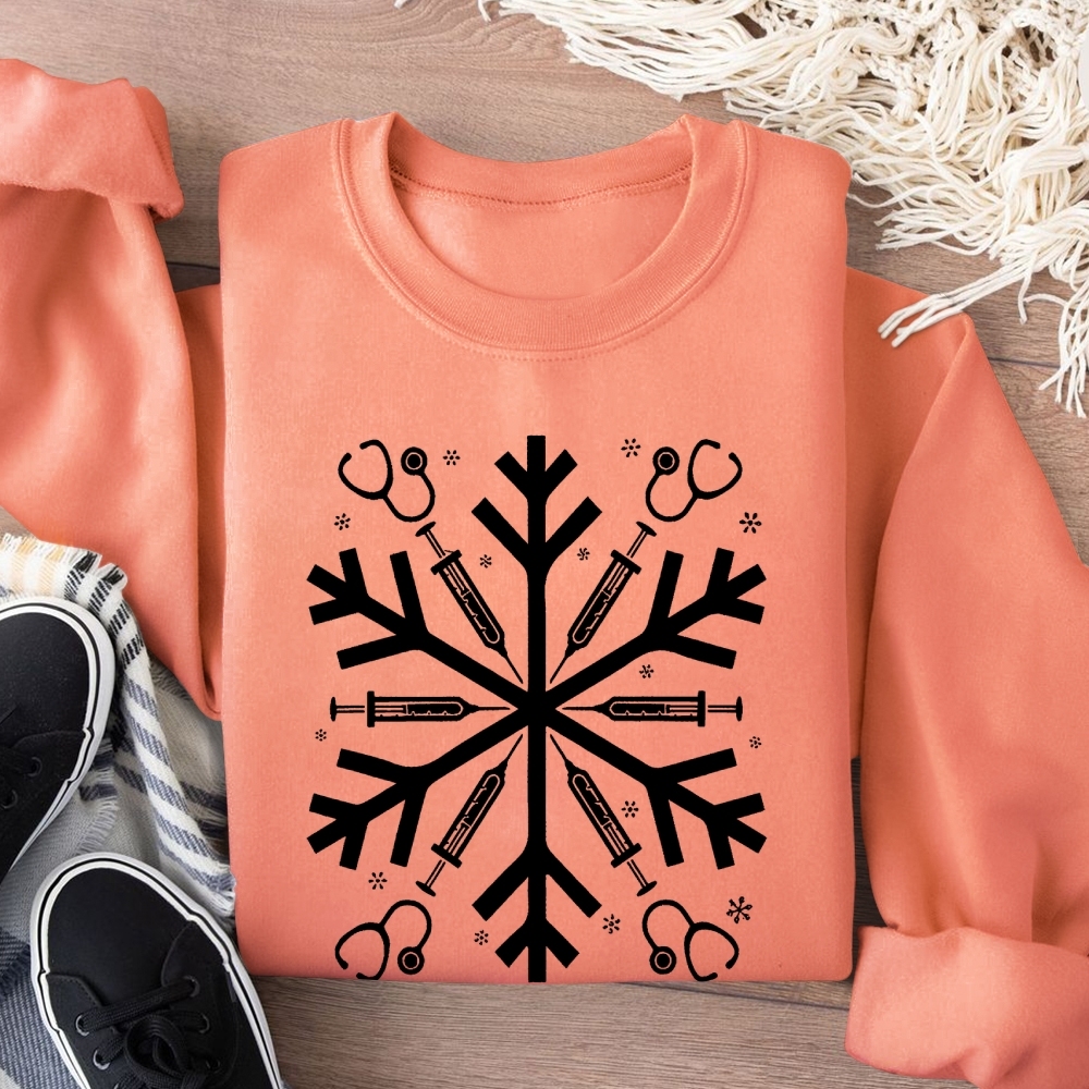 Nurse Snowflake Vibes Christmas Cotton Pullover Sweatshirt