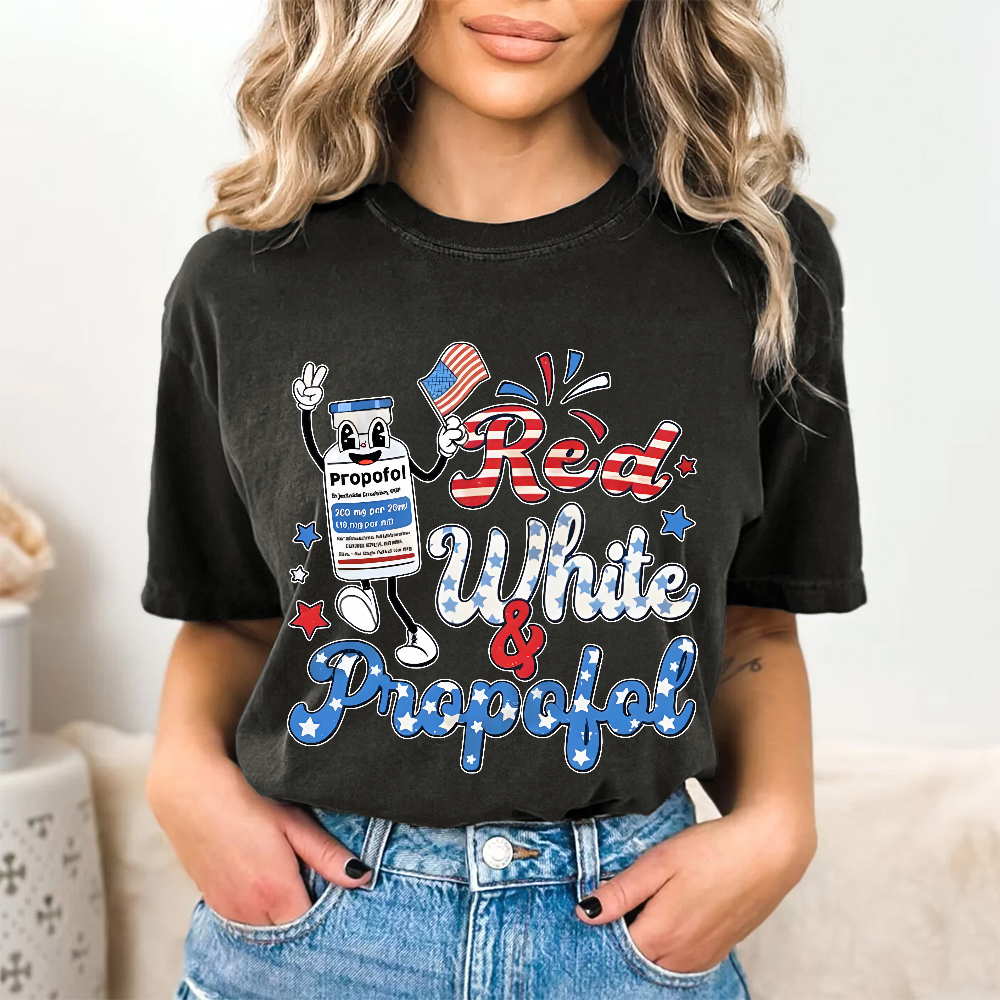 Red White & Propofol Funny ICU Nurse Vintage Washed T-shirt