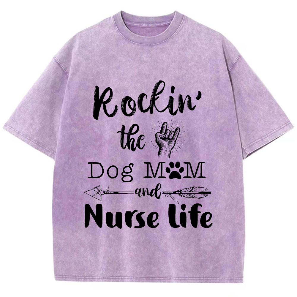 Rockin’ The Dog MoM And Nurse Life Vintage Washed T-shirt