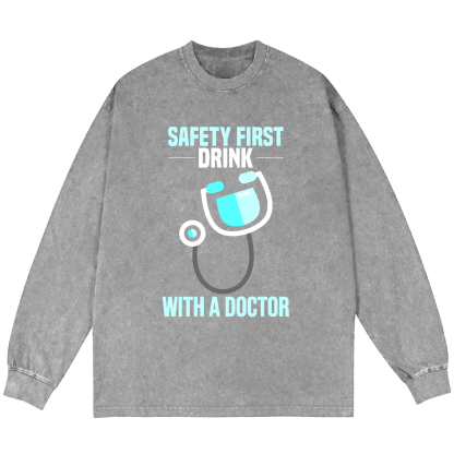 Safety First - Drink With A Doctor Vintage Washed Sweatshirts