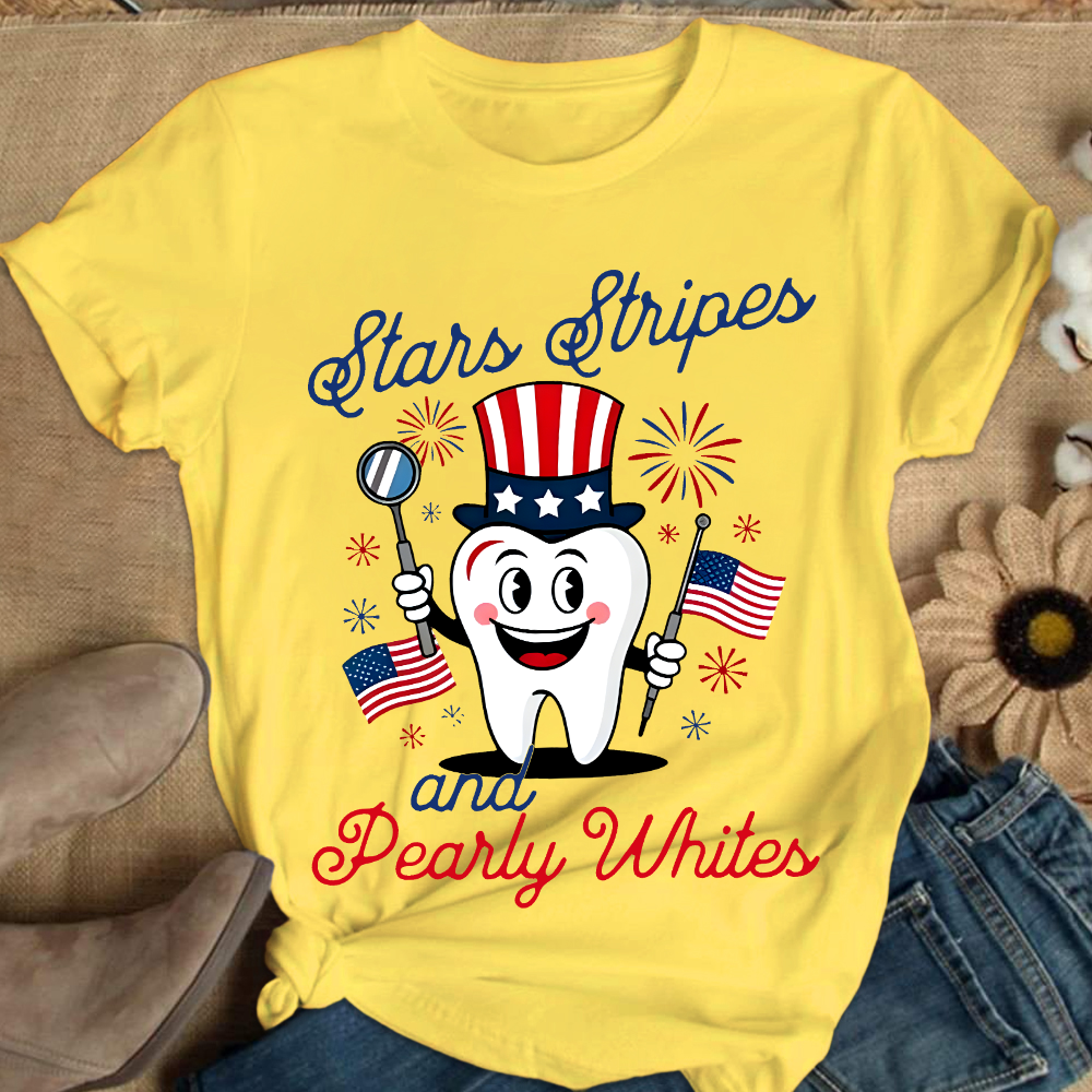 Stars Stripes And Pearly Whites Cotton Nurse T-shirt