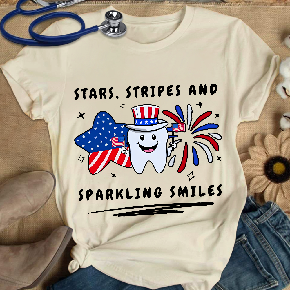 Stars Stripes And Sparkling Smiles Cotton Nurse T-shirt