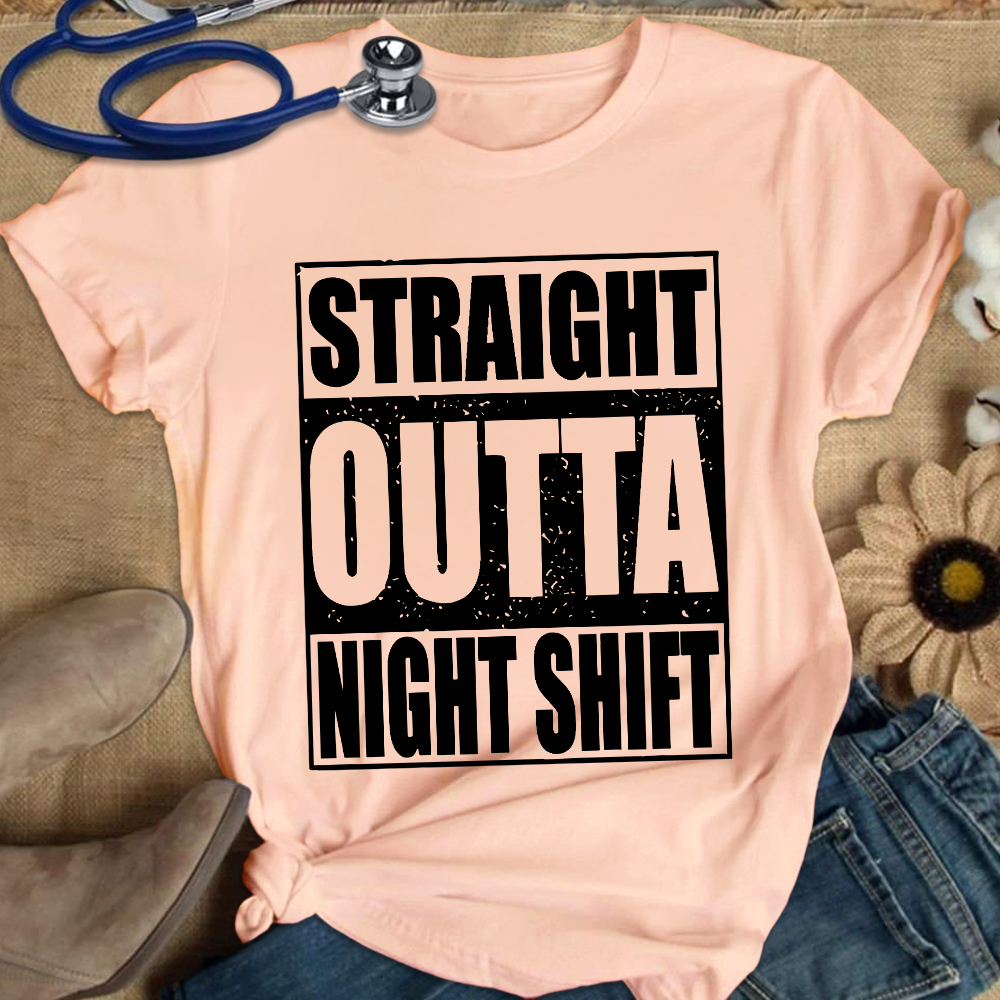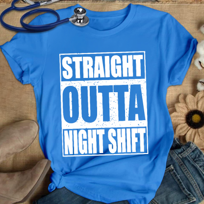 Straight Outta Night Shift Cotton Nurse T-shirt