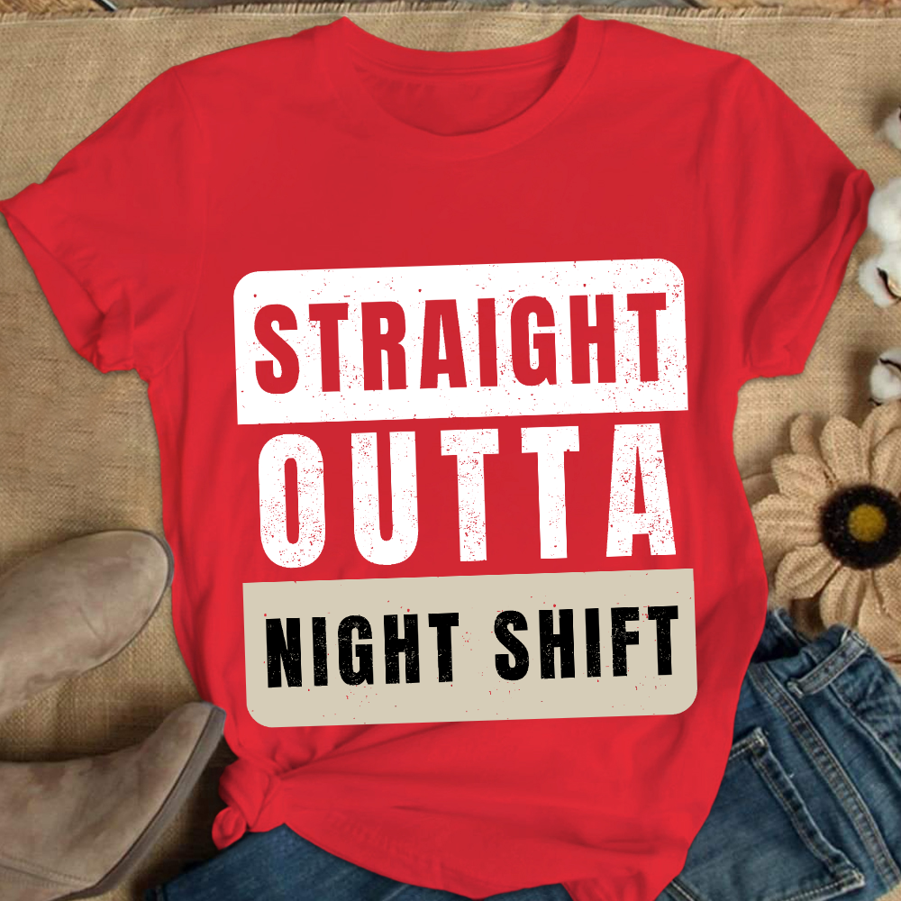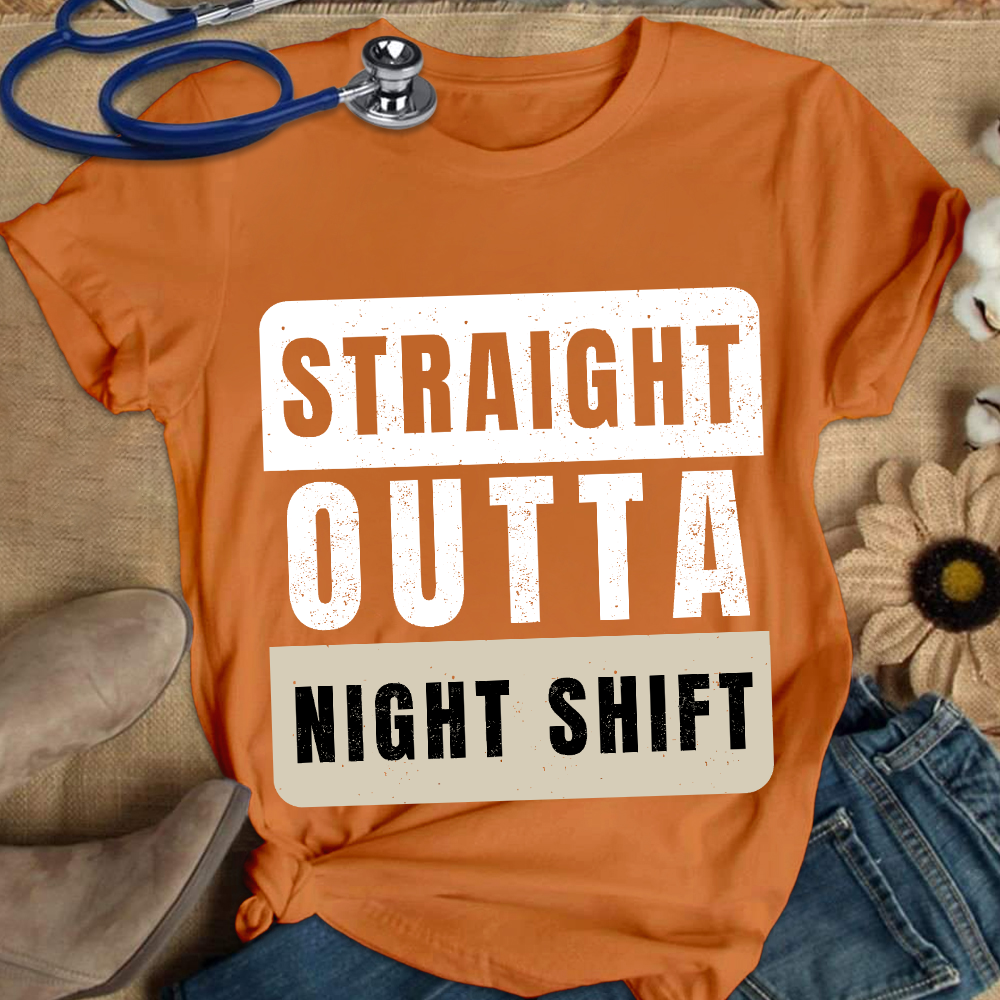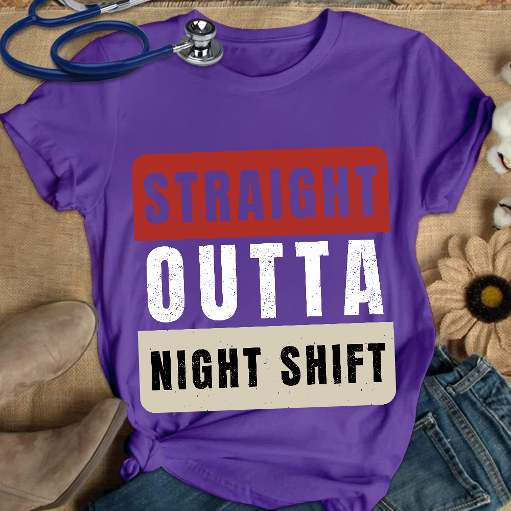 Straight Outta Night Shift Distressed Cotton Nurse T-shirt