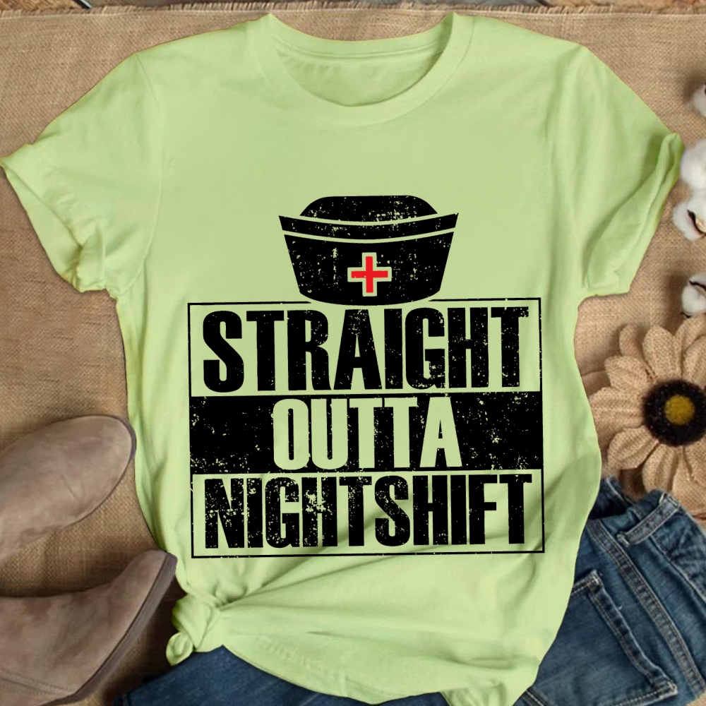 Straight Outta Nightshift Funny Quote Cotton Nurse T-shirt