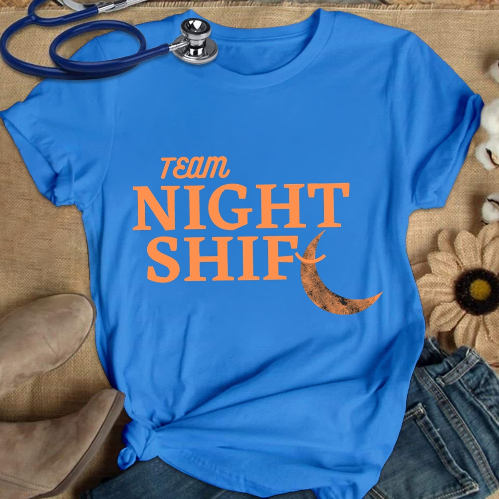 Team Night Shift For Night Workers Cotton Nurse T-shirt
