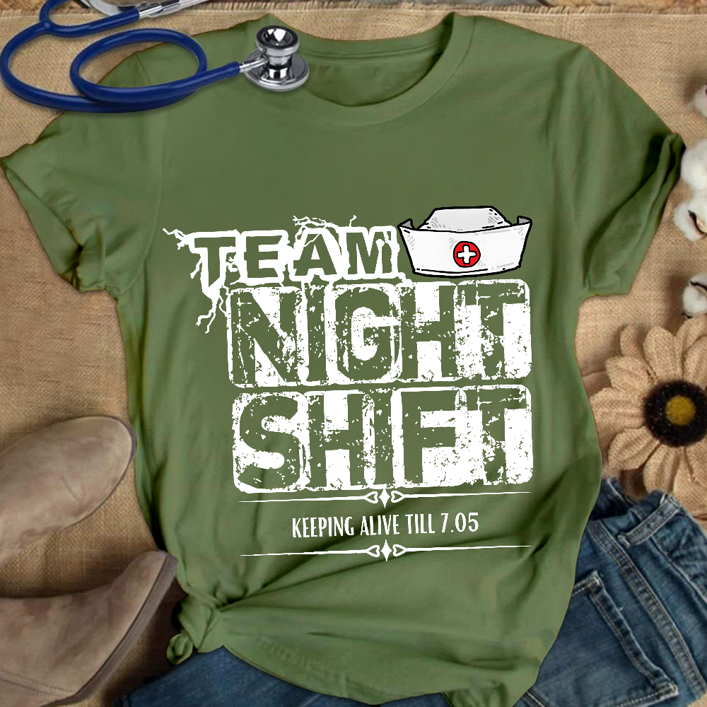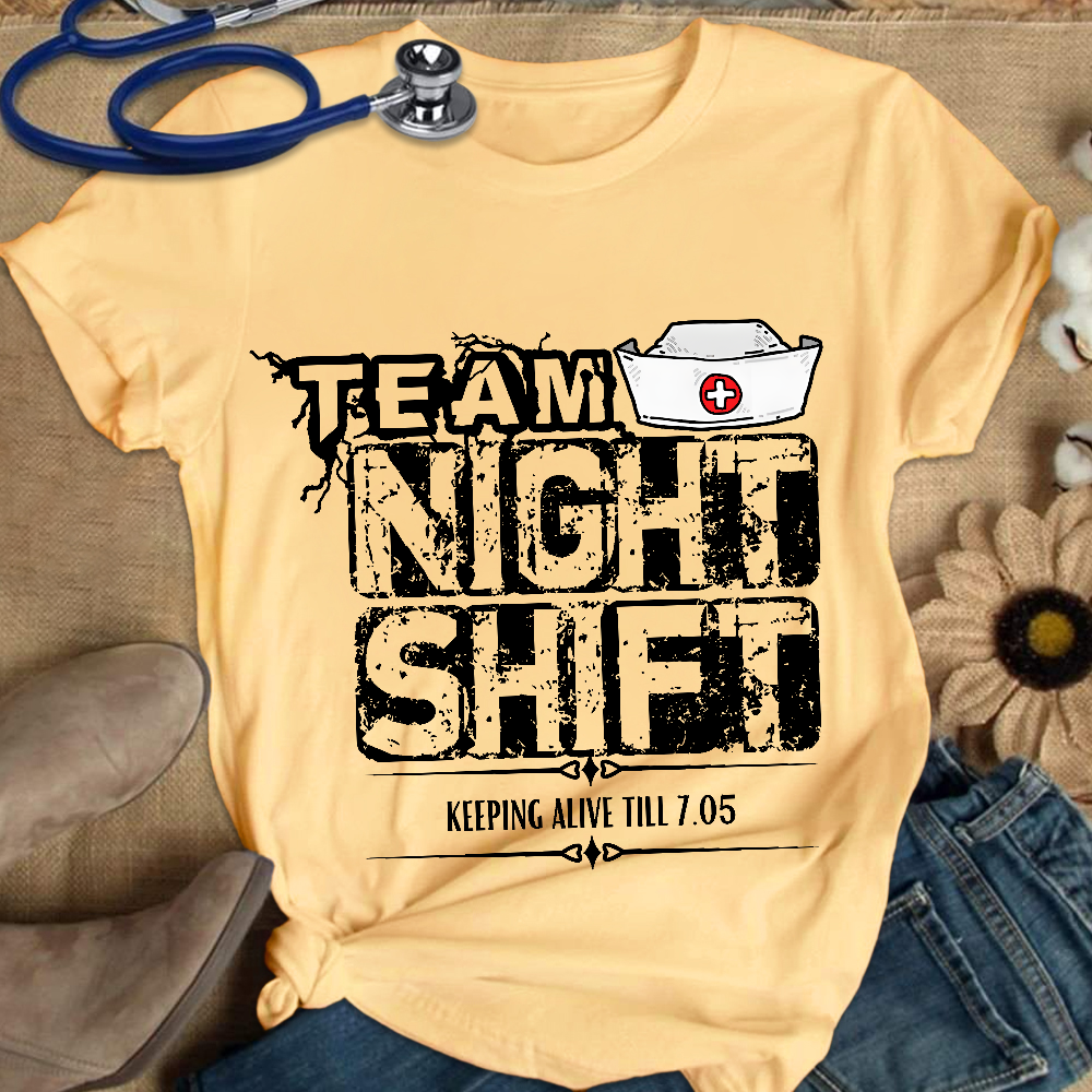Team Night Shift Keeping Alive Till 7.05 Cotton Nurse T-shirt
