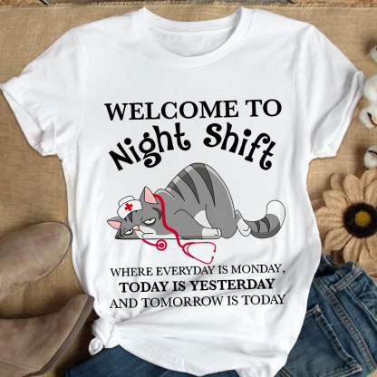 Welcome To Night Shift Where Everyday Is Monday Cotton Nurse T-shirt