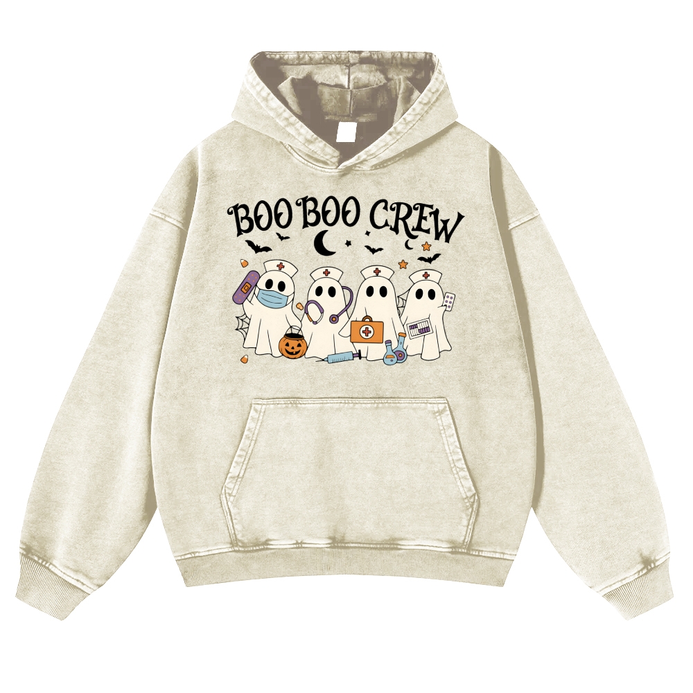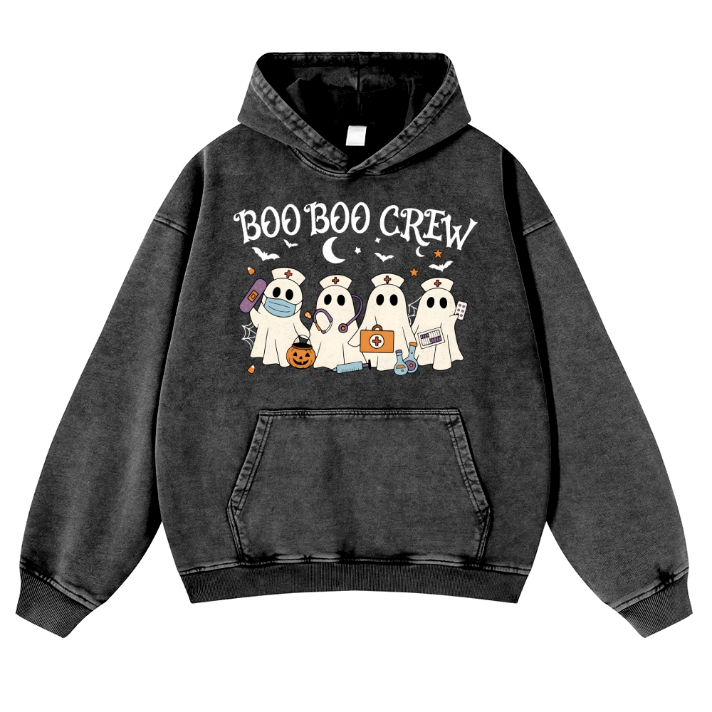 Boo Boo Crew Funny Ghost EMS EMT Paramedic Nurse Halloween Vintage Washed Hoodie