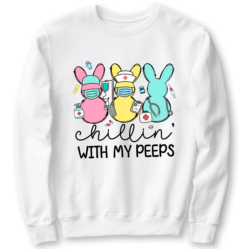 Chillin With My Peeps Easter Bunny Cotton Pullover Sweatshirt