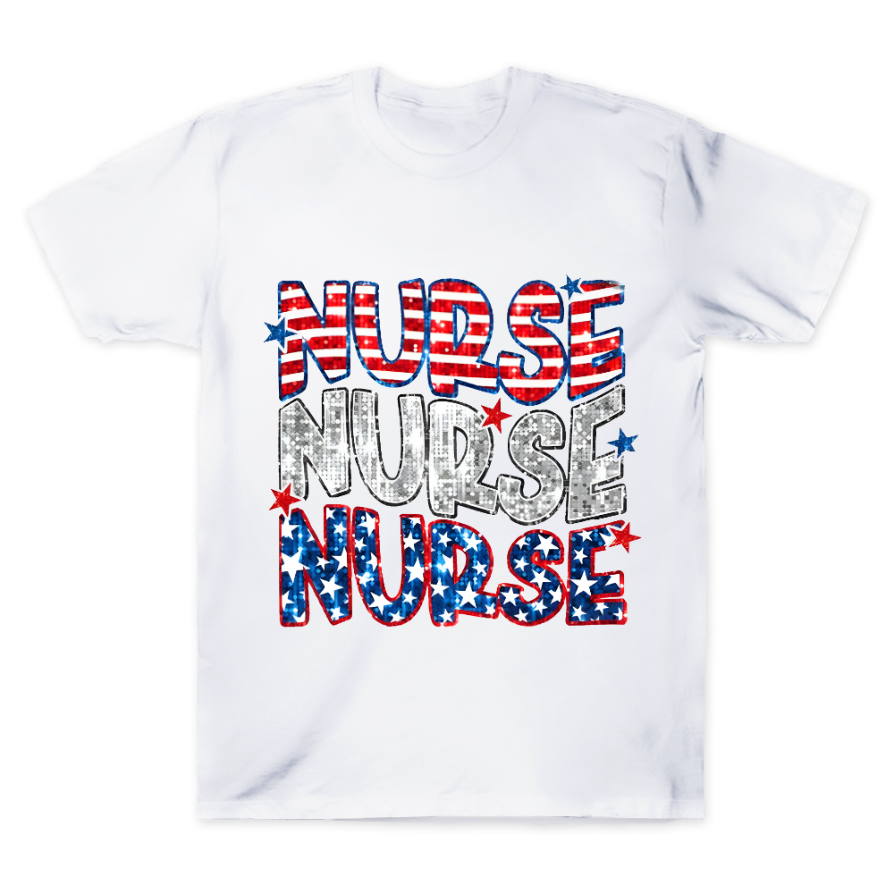 Glitter Star And Strip Flag Cotton Doctor T-shirt