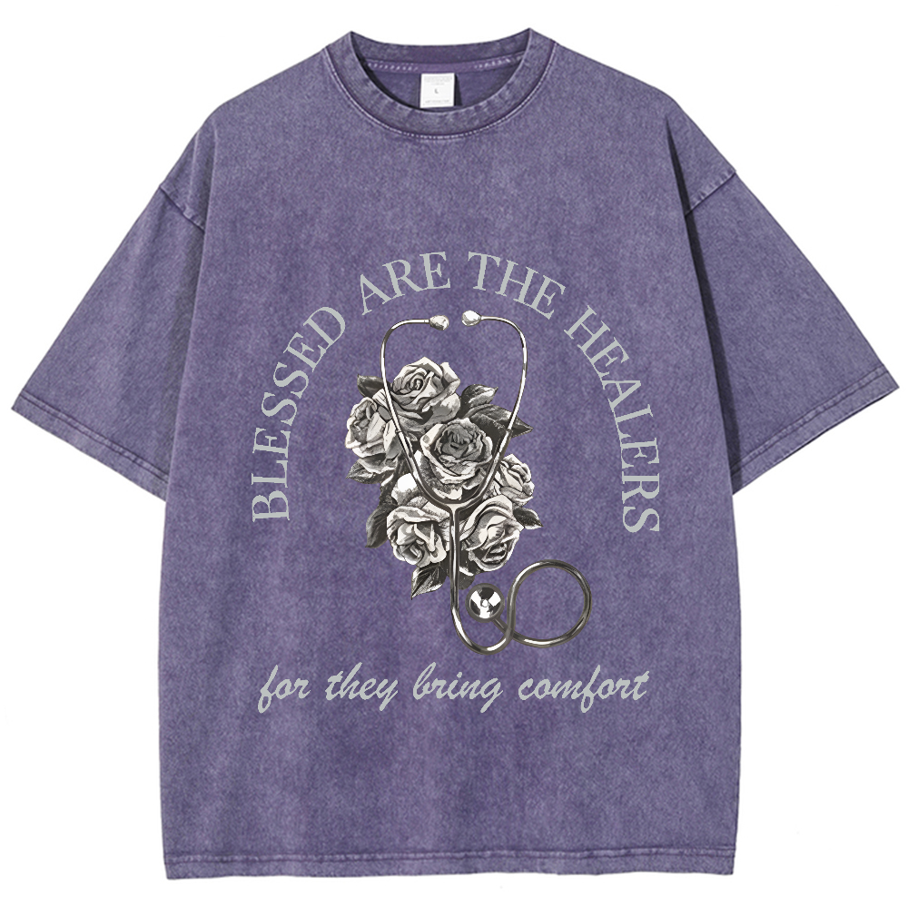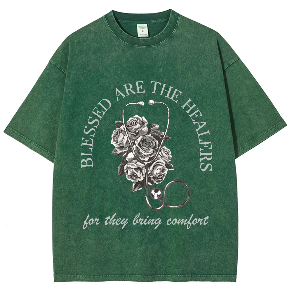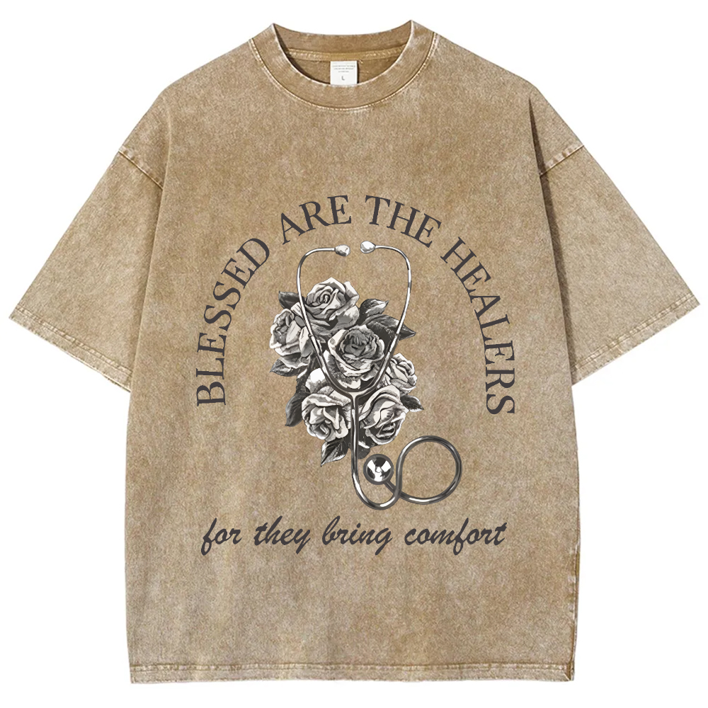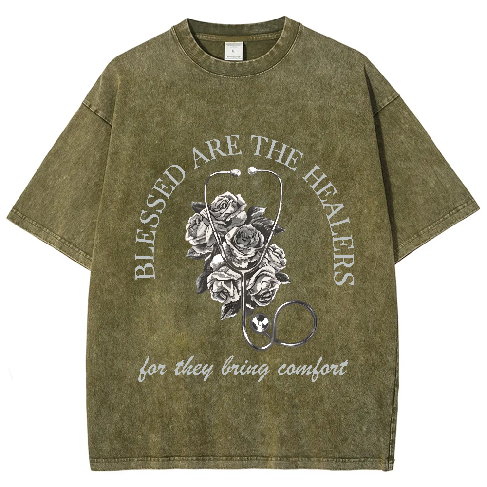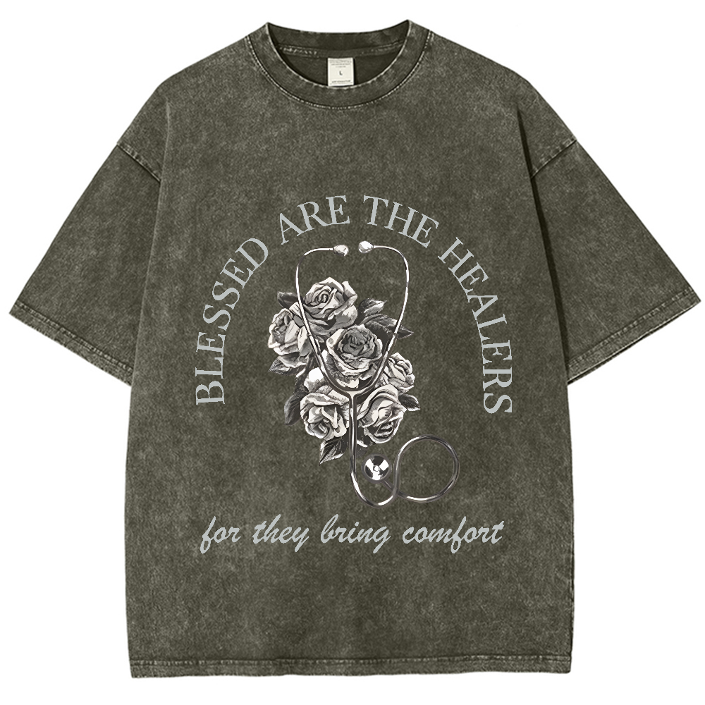 Blessed Are The Healers Flowers Vintage Washed T-shirt