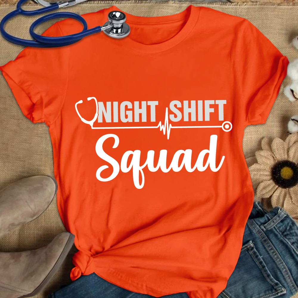 Funny Team Night Shift Squad Cotton Nurse T-shirt