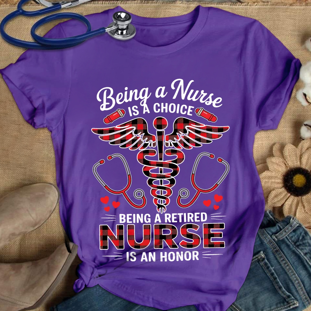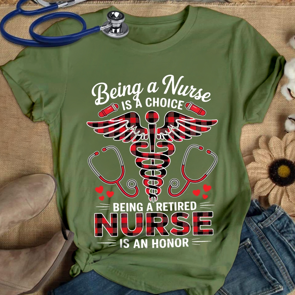 Being A Nurse Is A Choice Being A Retired Nurse Is An Honor Cotton Nurse T-shirt