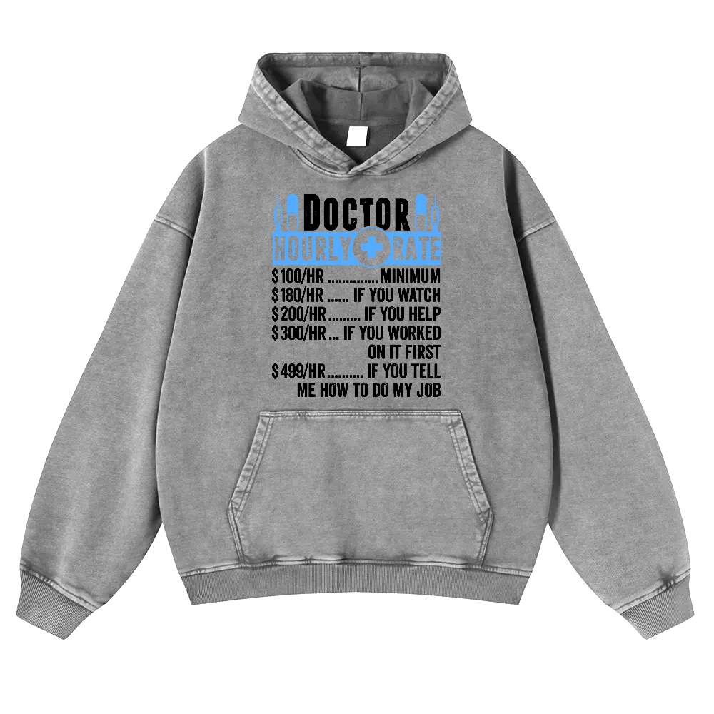 Doctor Hourly Rate Vintage Washed Hoodie